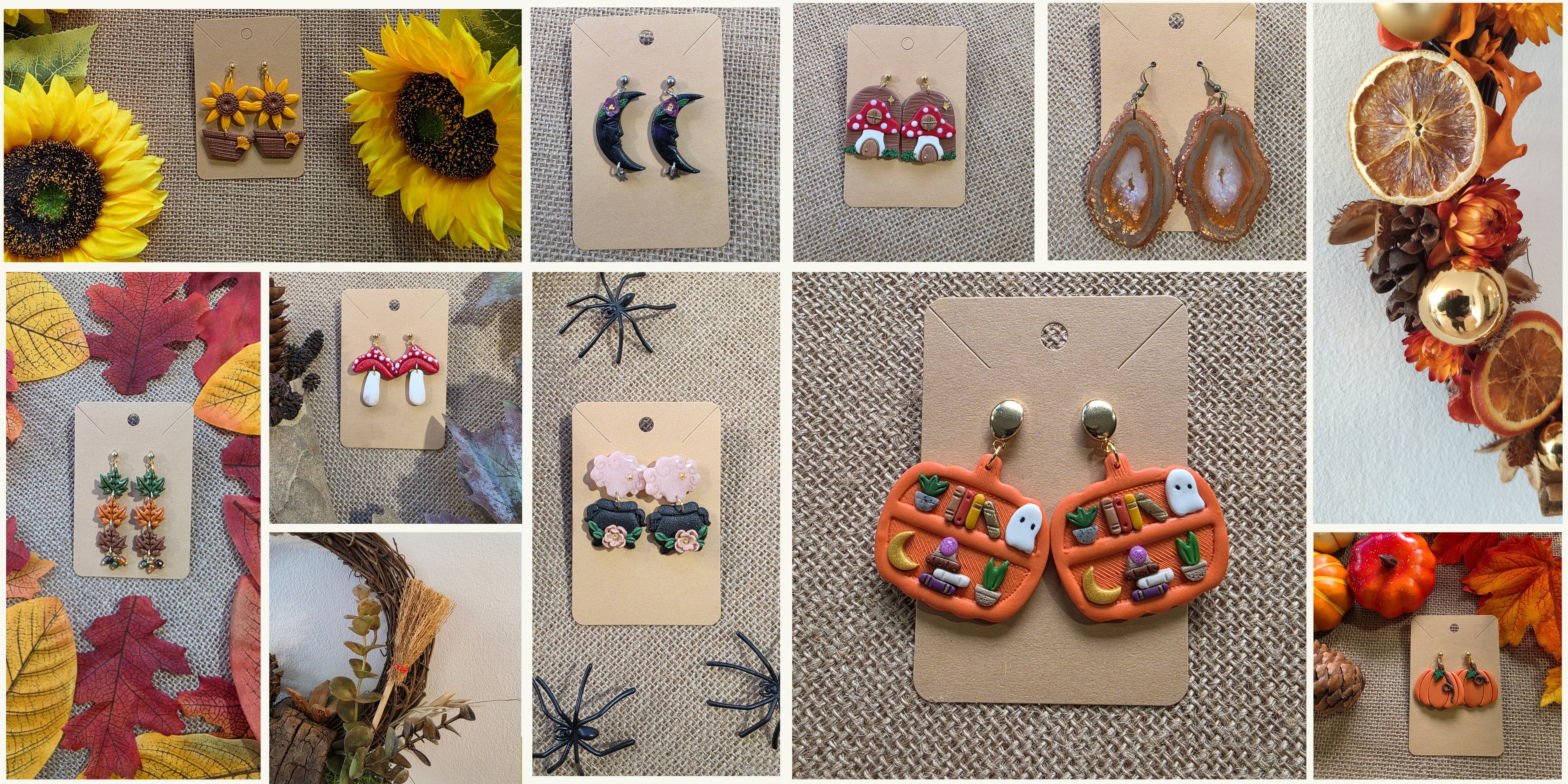 Boucles d'oreilles en argile polymère collection "LUNA" modèle Hécate - collection automne