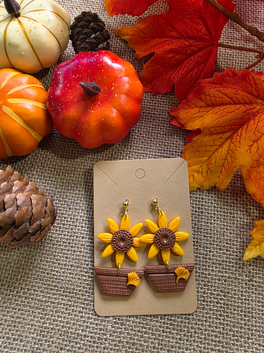 Boucles d'oreilles en argile polymère collection ESPRIT D'AUTOMNE modèle Soleil en pot - collection automne