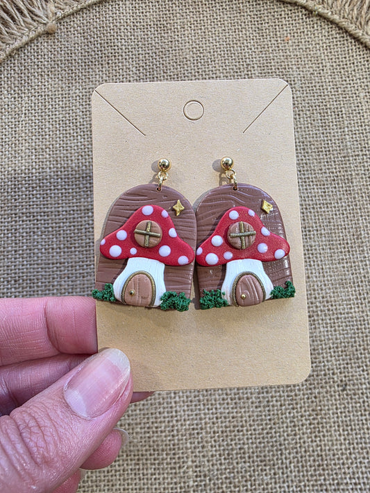 Boucles d'oreilles en argile polymère collection MAGIE DES BOIS modèle Maison Champignon - collection automne