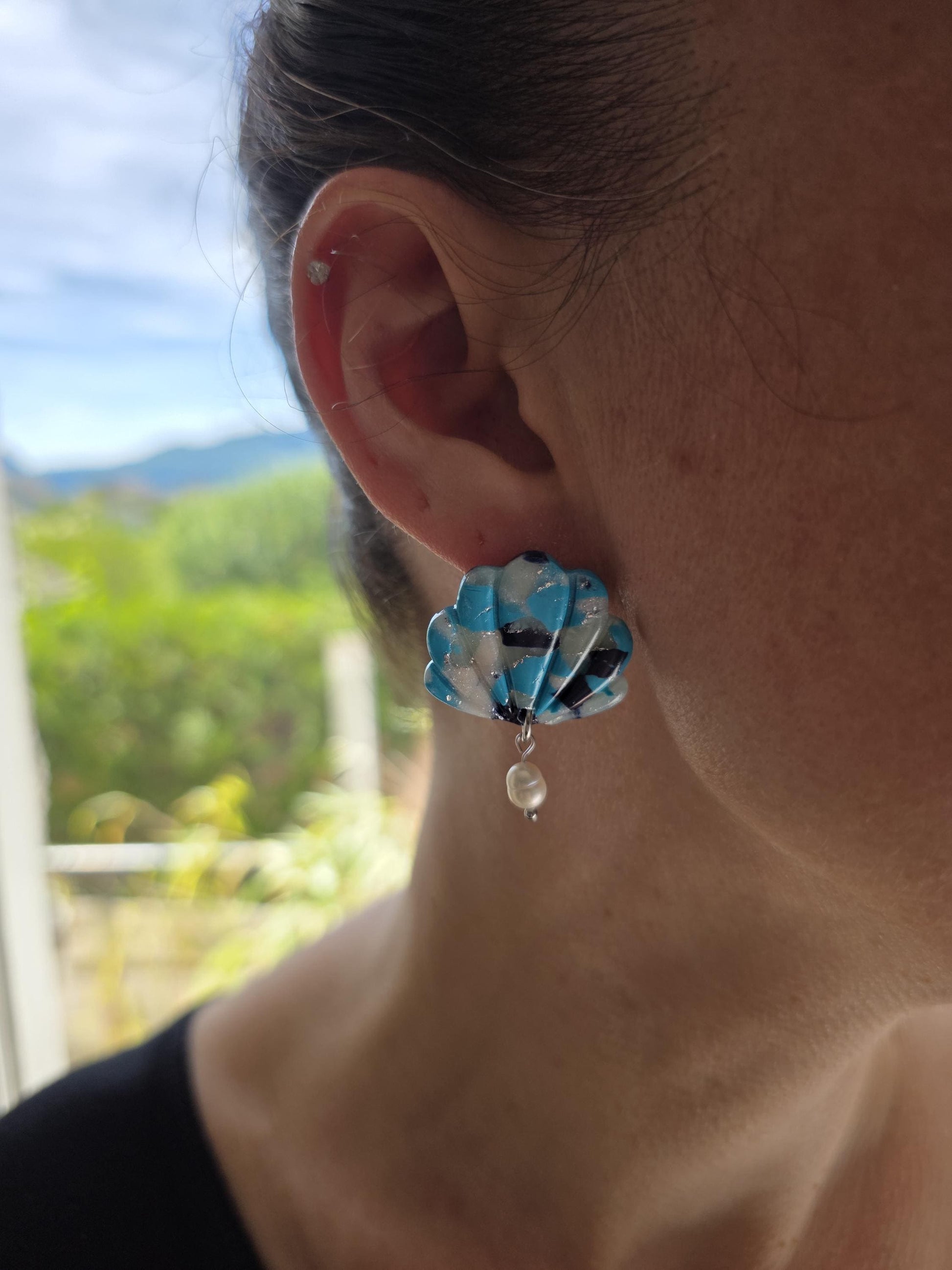 Boucles d'oreilles "Camouflage Marin" en argile polymère - Collection "Sous l'Océan" été 2025