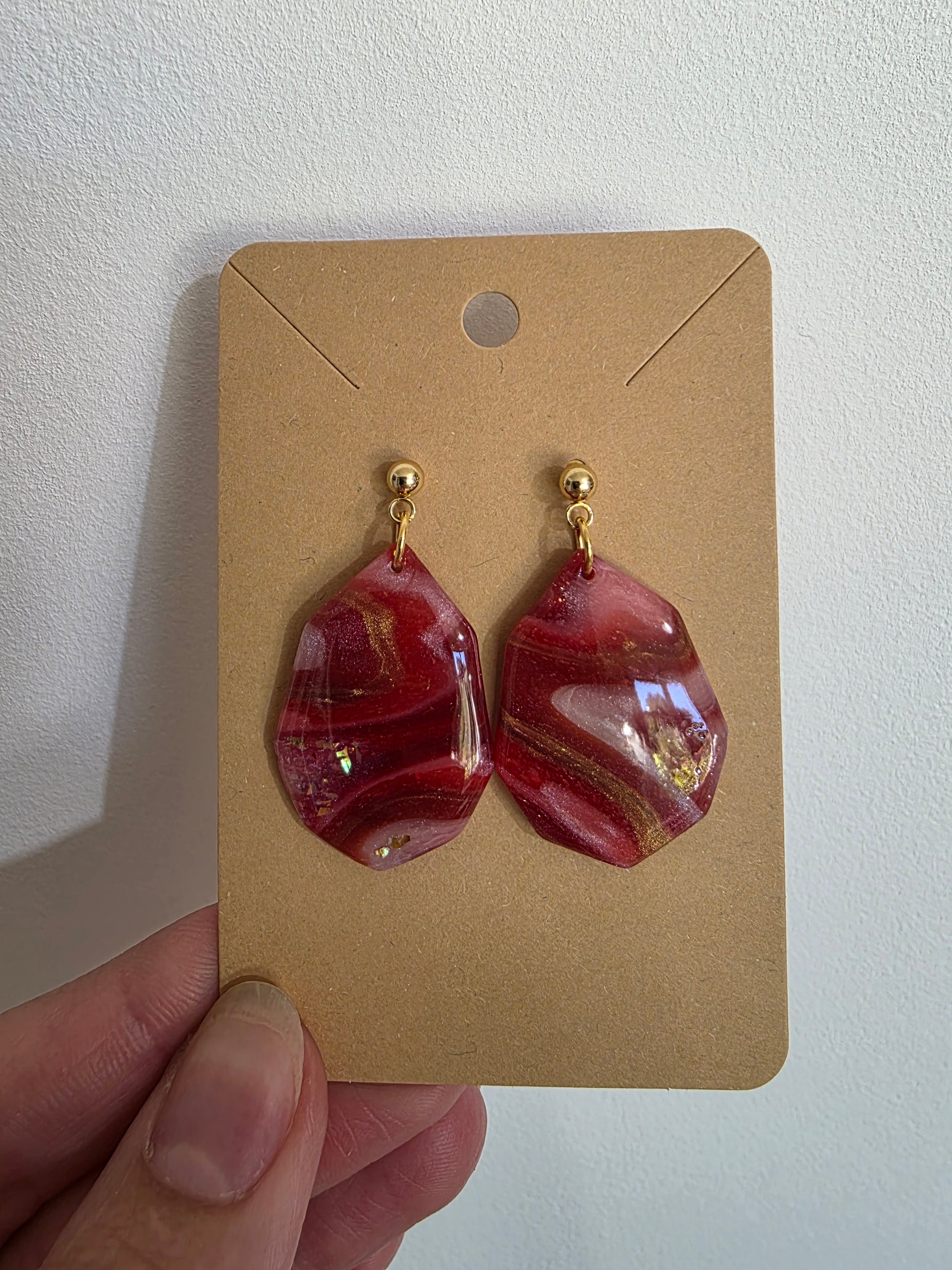Les boucles d'oreilles sont réalisées en argile polymère, elles sont donc très légères. Elles sont recouvertes d'une fine couche de résine pour les protéger et révéler toutes leurs couleurs.