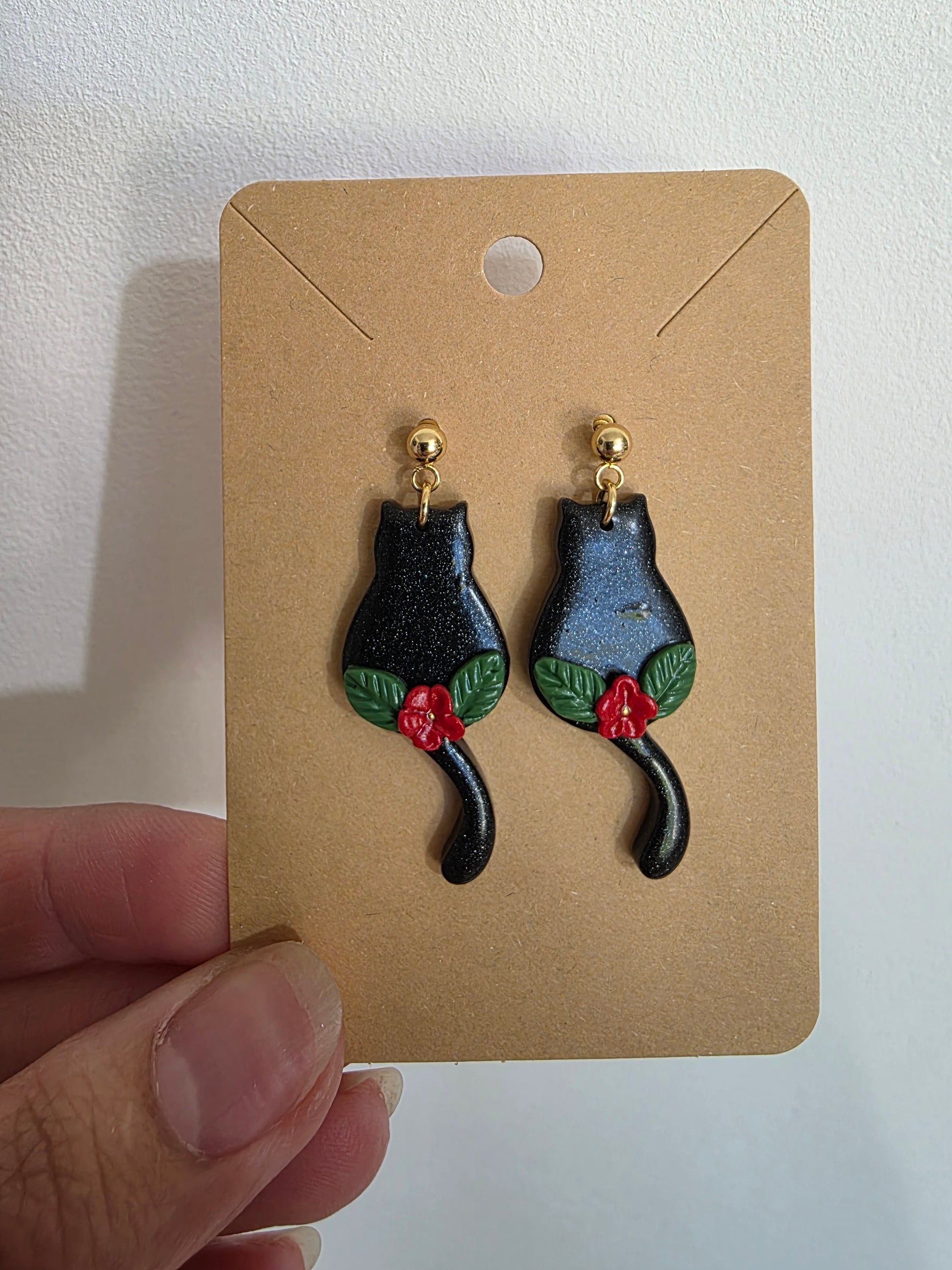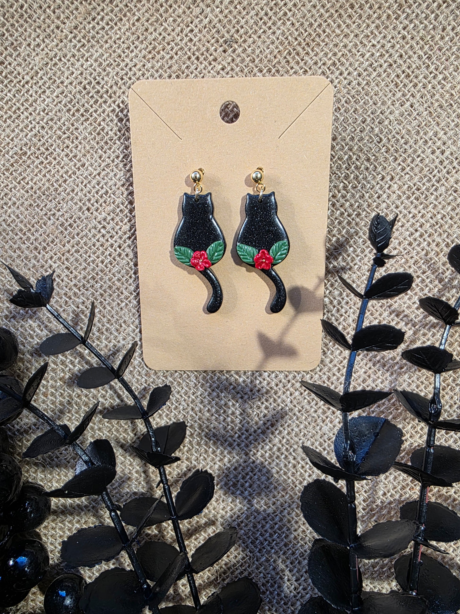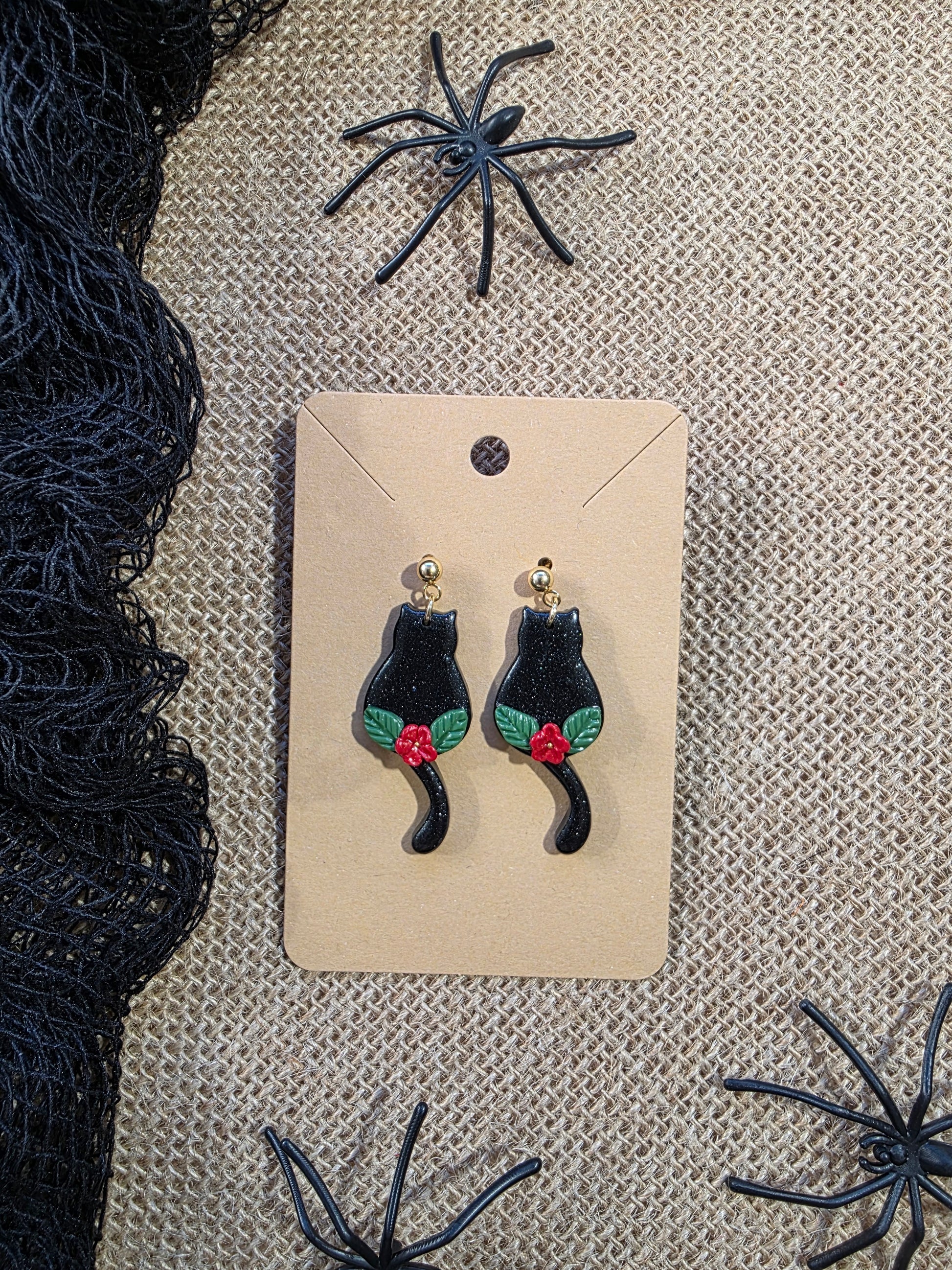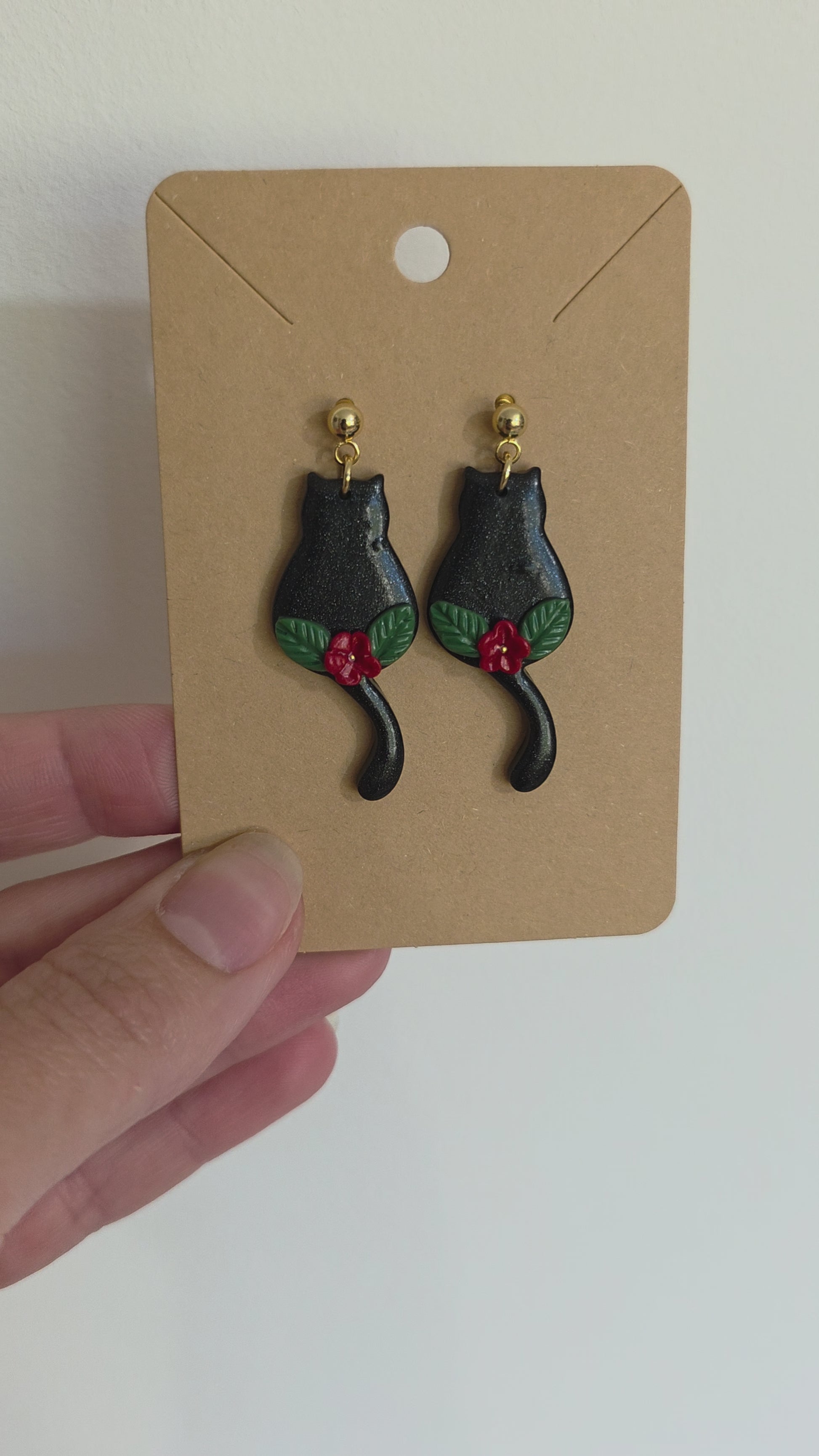 Voici Salem, ton petit compagnon noir espiègle et adorable. Sculpté en argile polymère, il est orné d’une petite fleur rouge et de deux feuilles vertes, ajoutant une touche délicate et mignonne à son côté mystérieux.