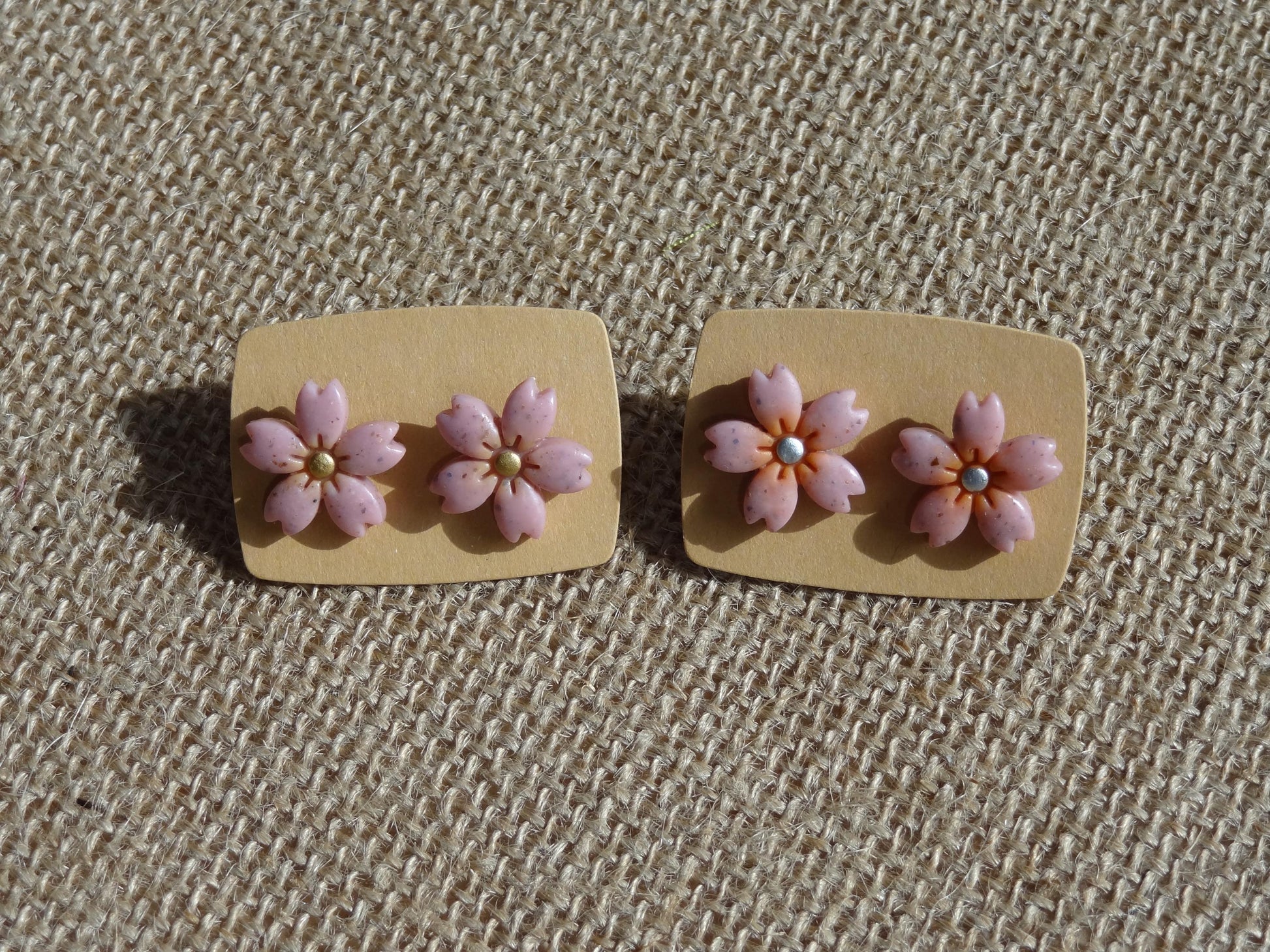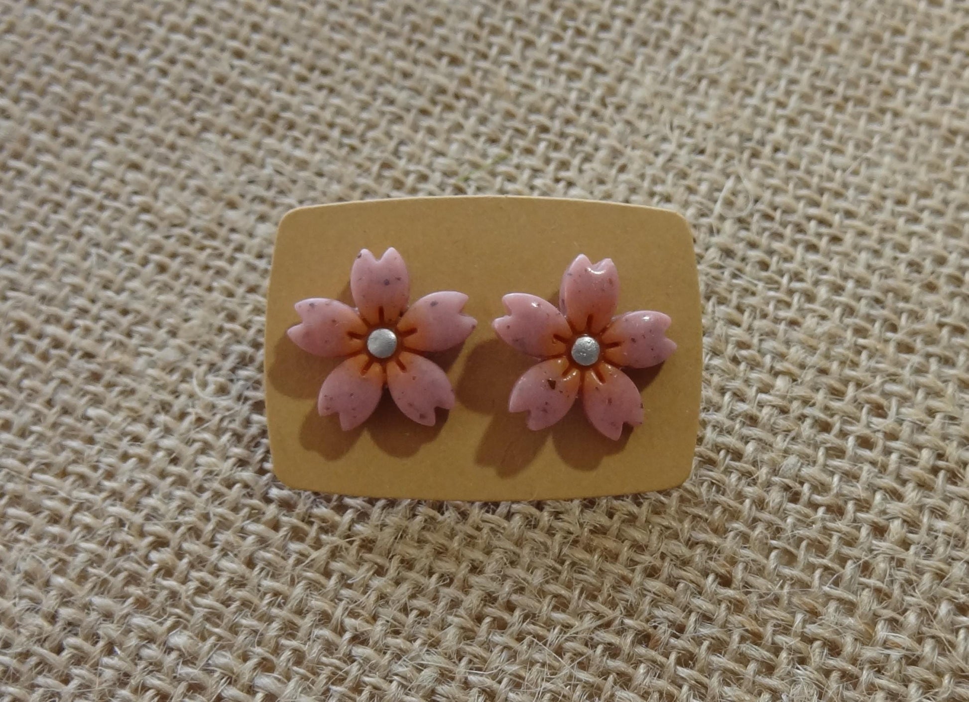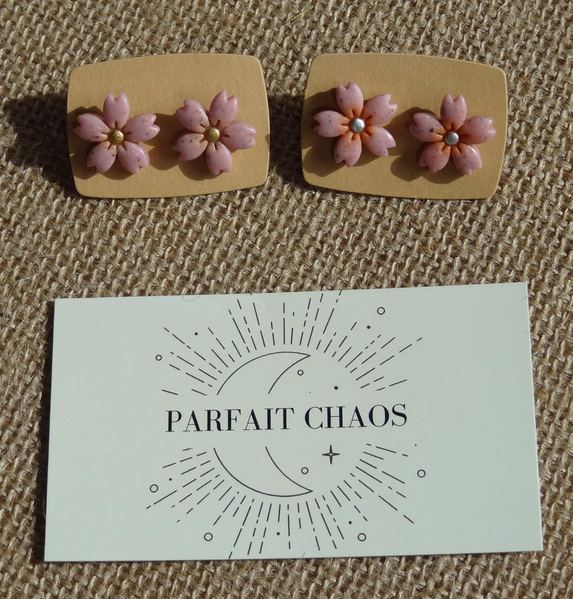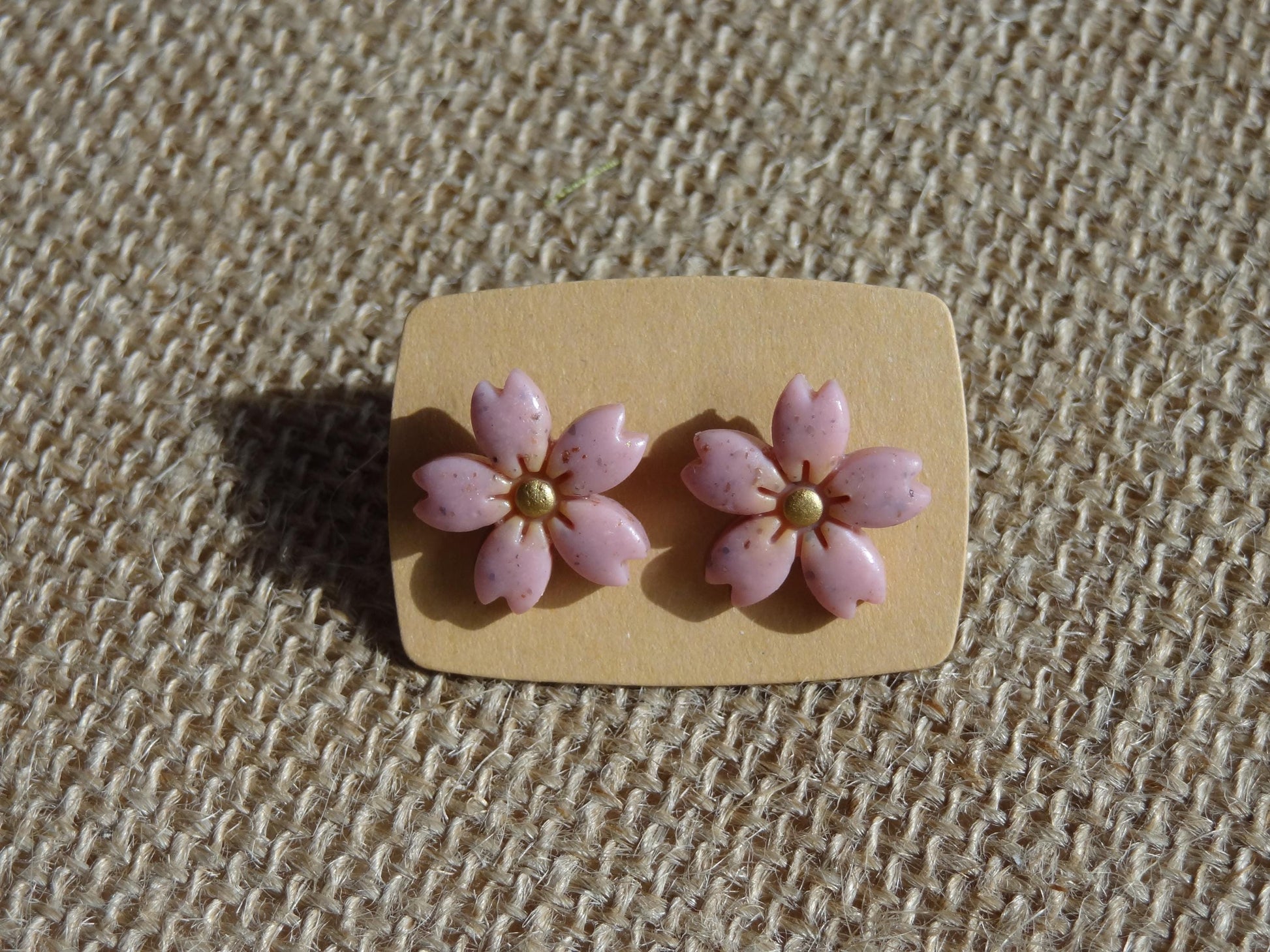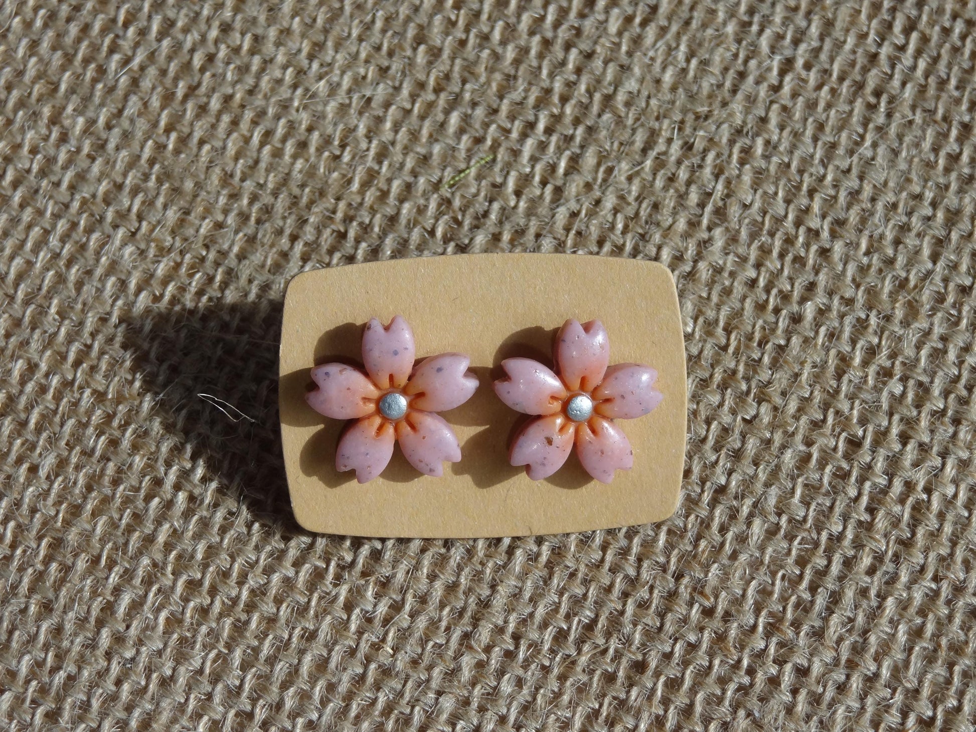 Boucles d'oreilles en argile polymère collection "Dans mon Jardin", modèle "Fleur de cerisier".