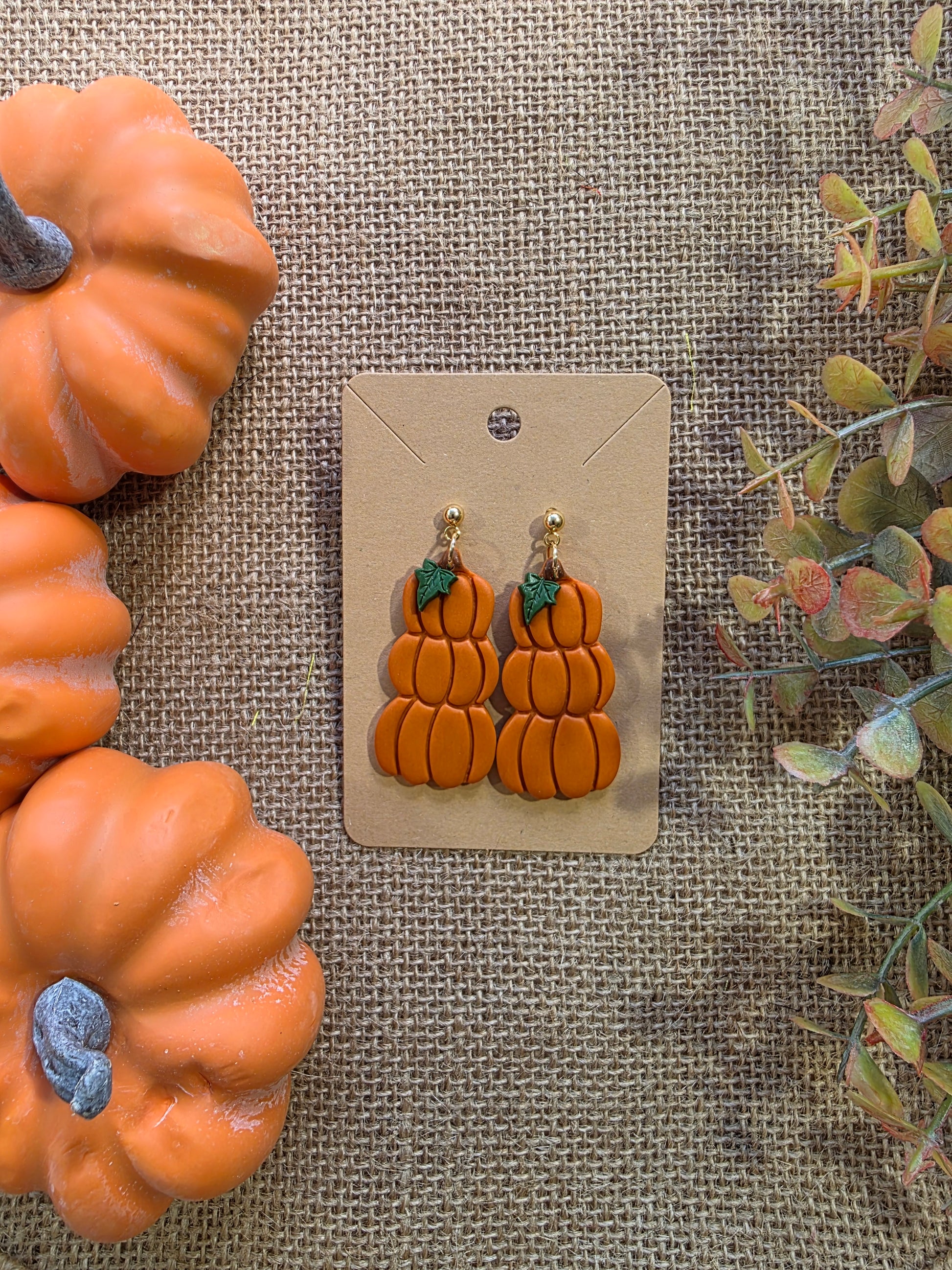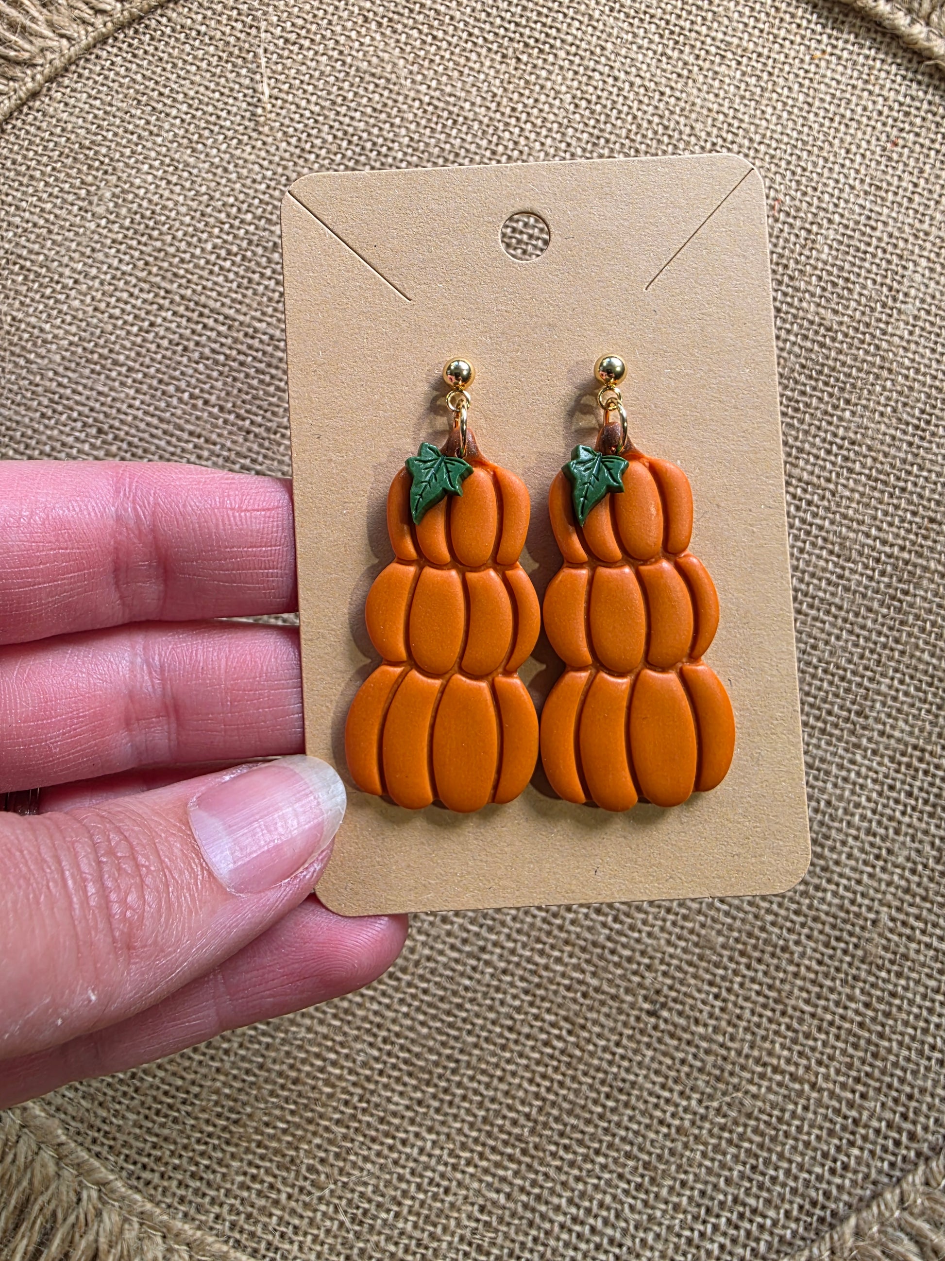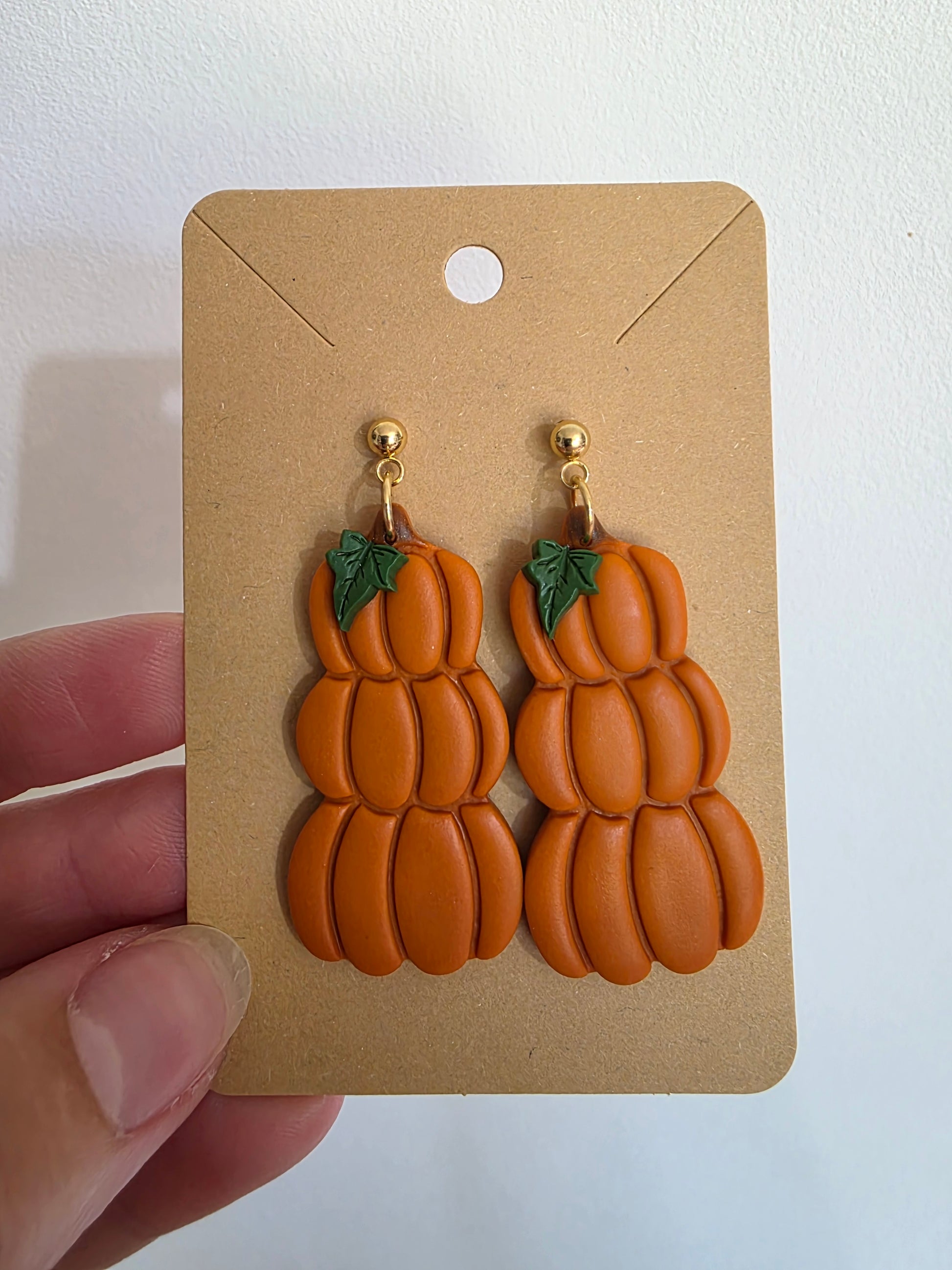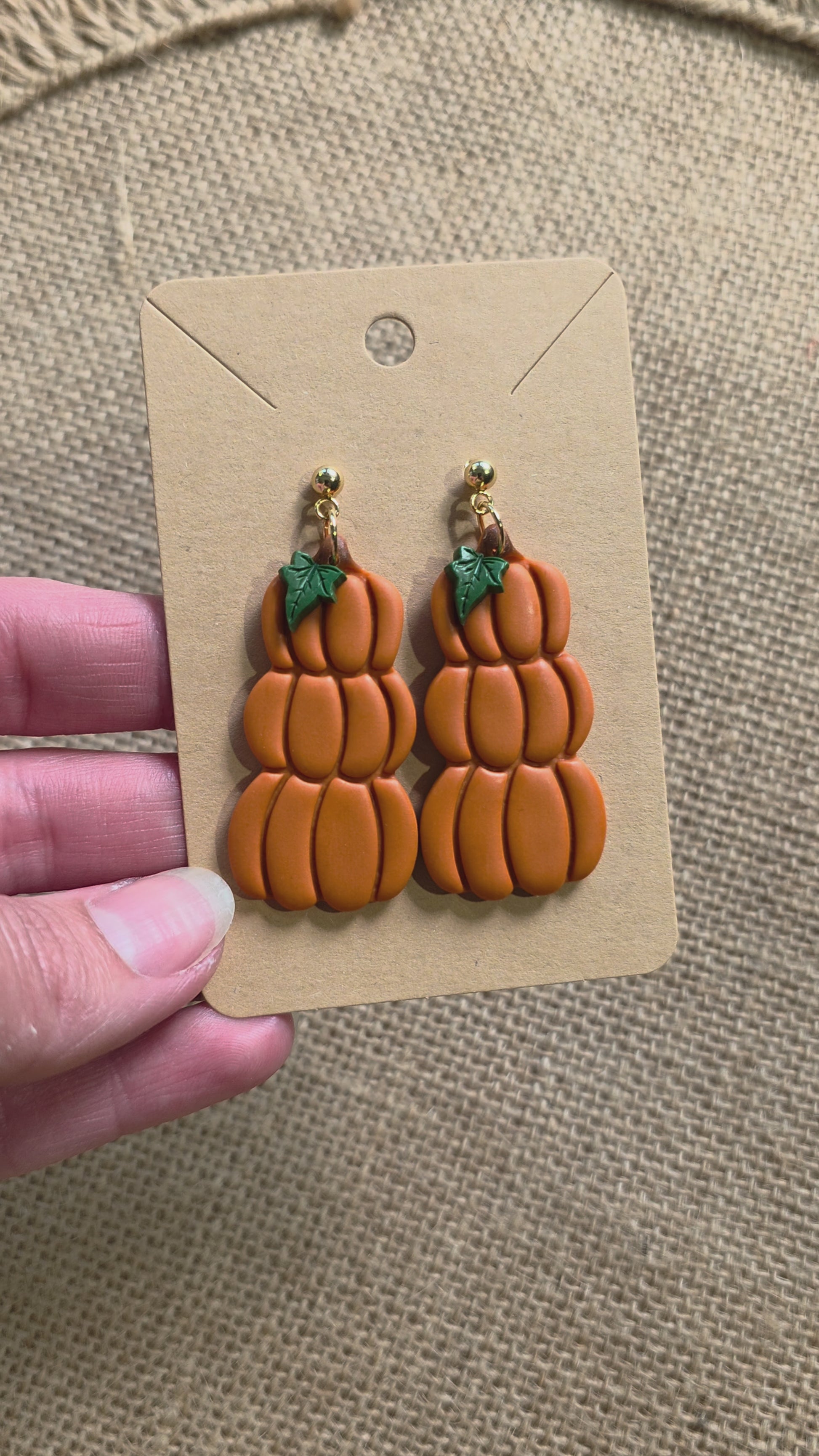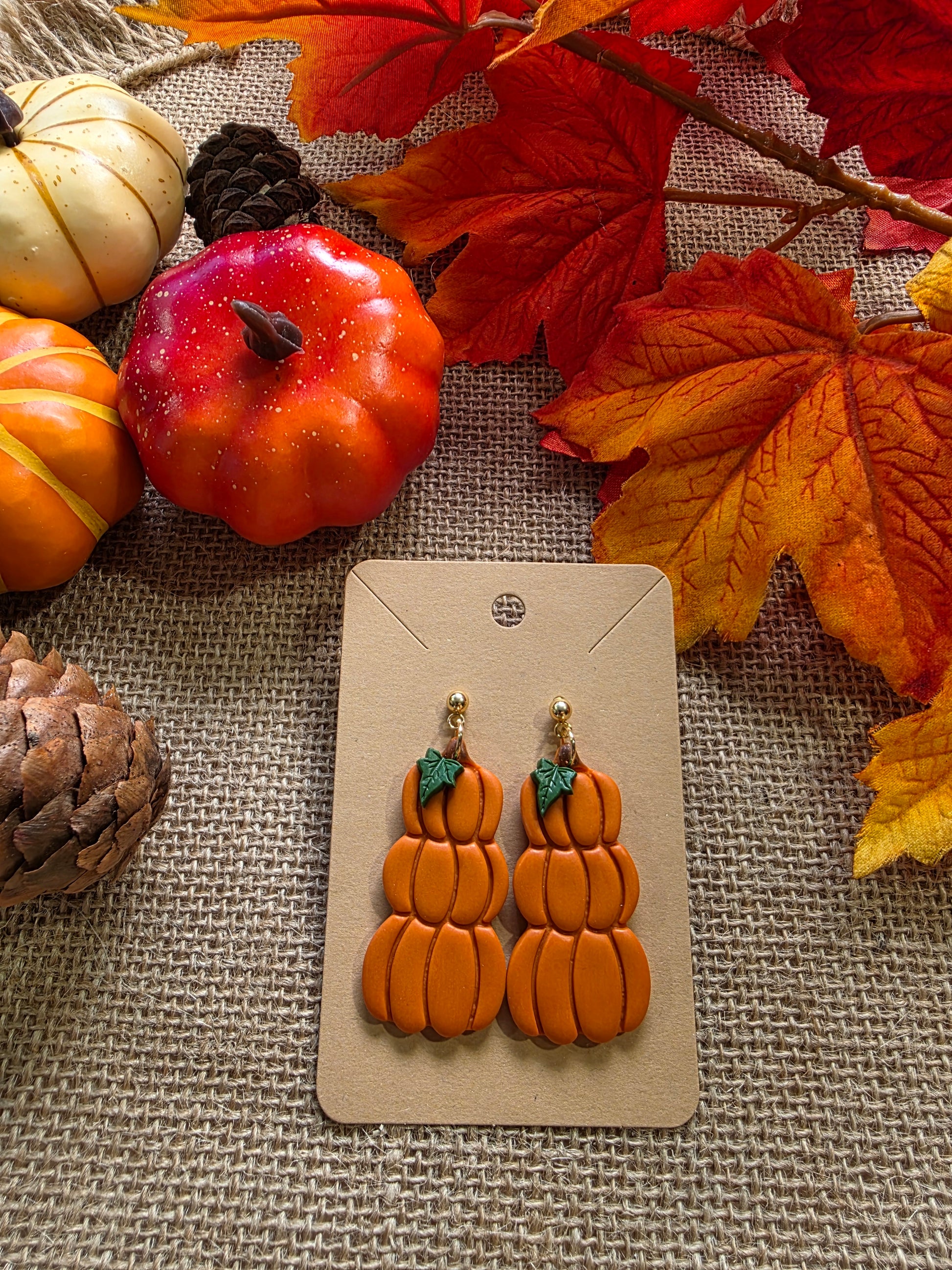Boucles d'oreilles en argile polymère collection ESPRIT D'AUTOMNE modèle Citrouilles en cascade - collection automne