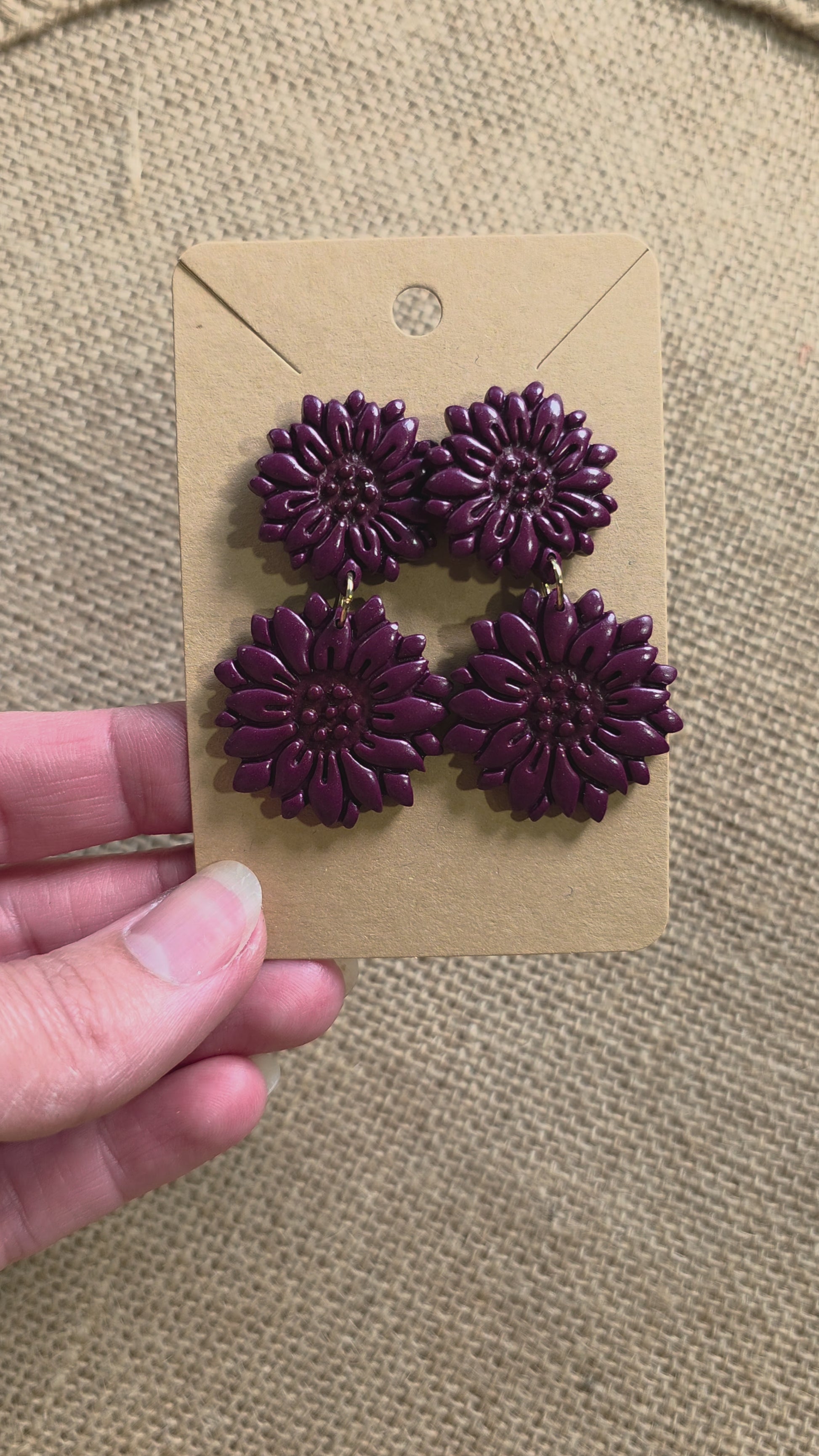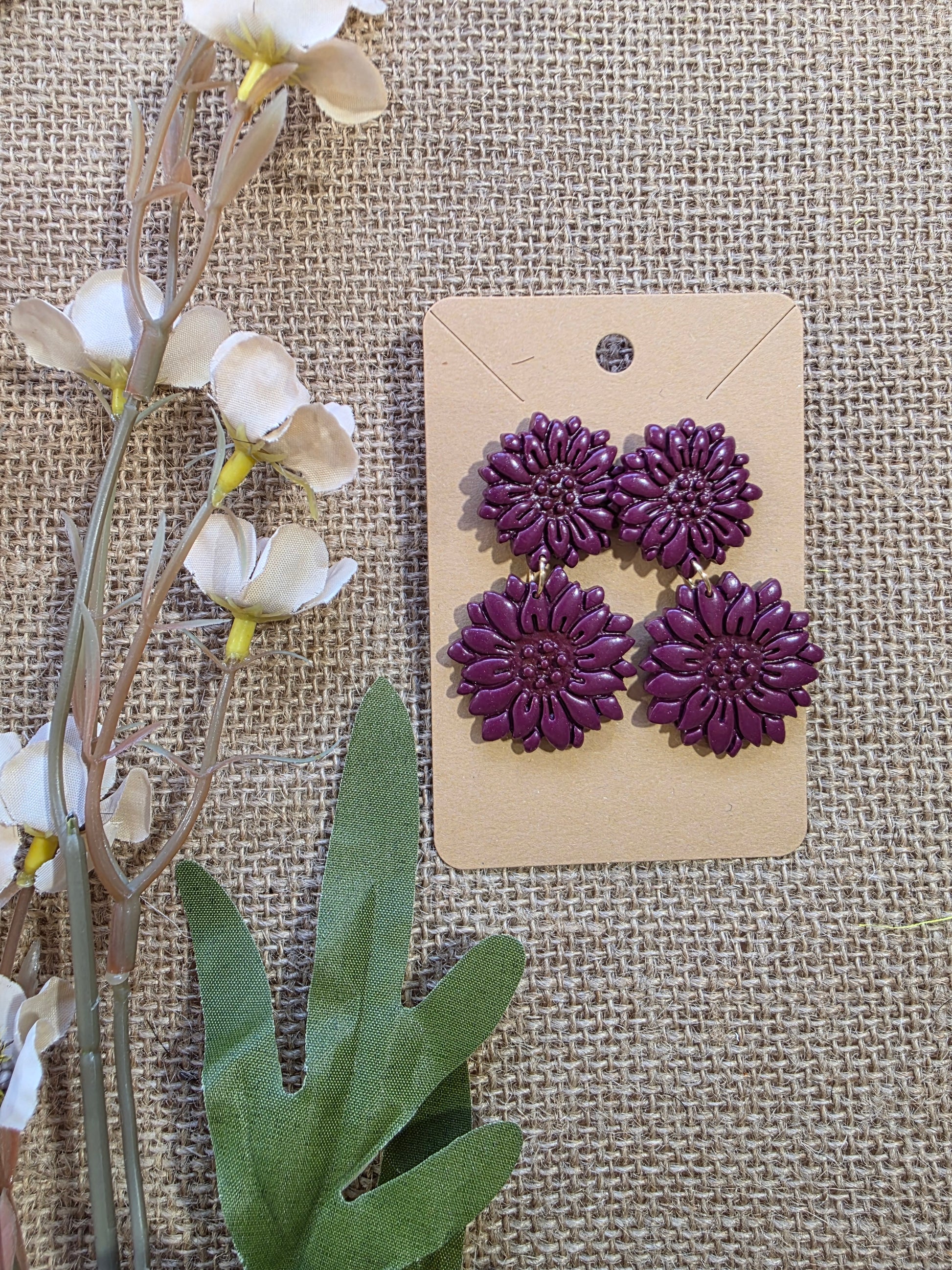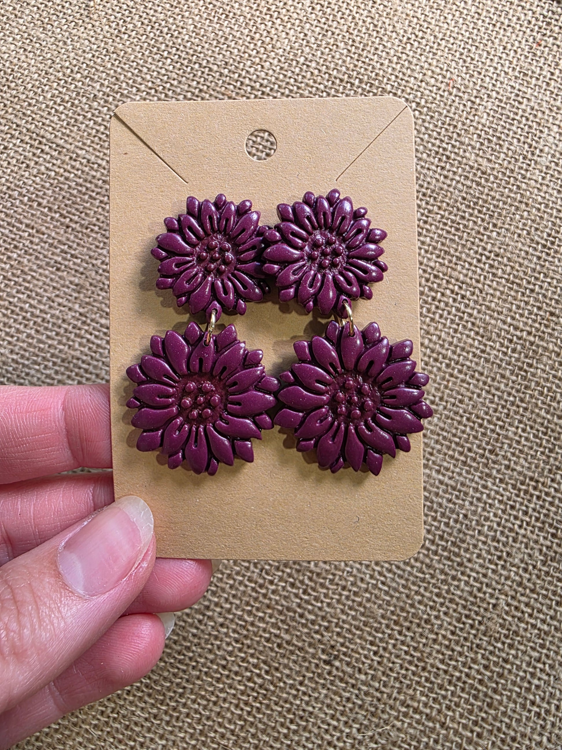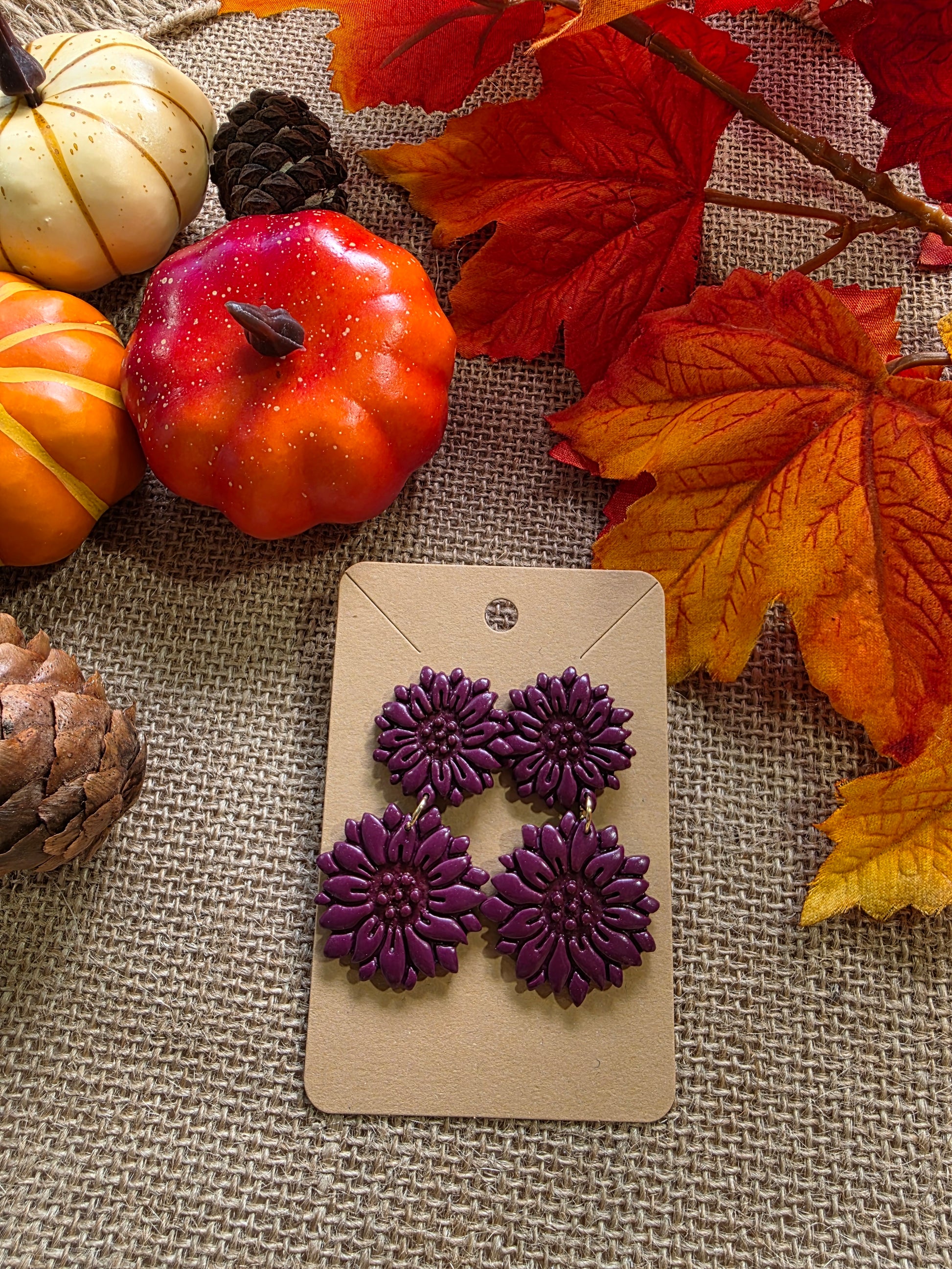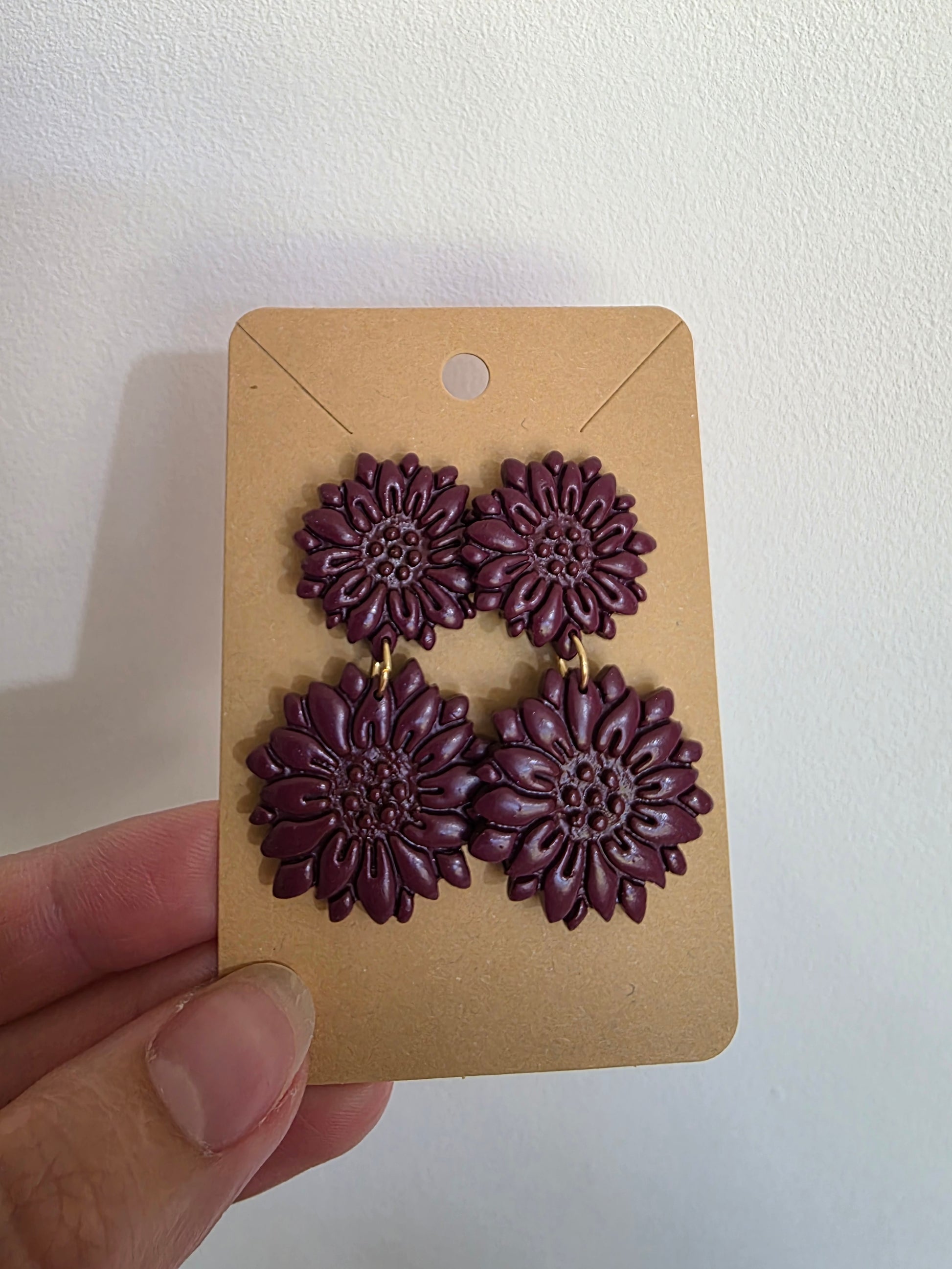 Boucles d'oreilles en argile polymère collection ESPRIT D'AUTOMNE modèle Duo de fleurs - collection automne