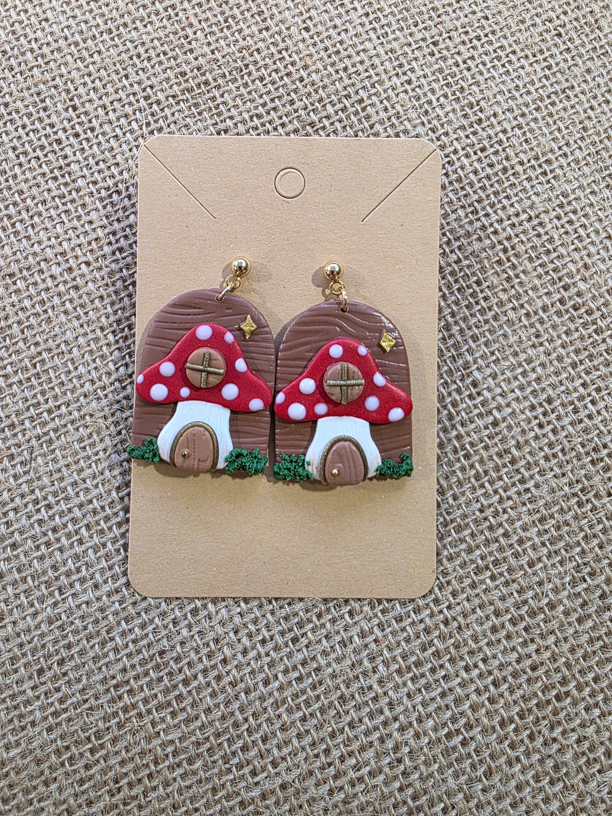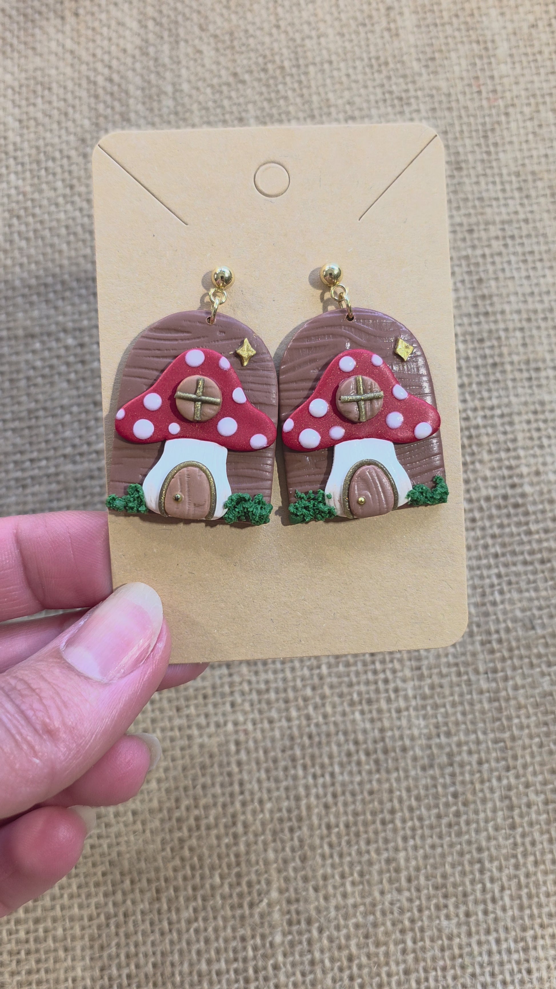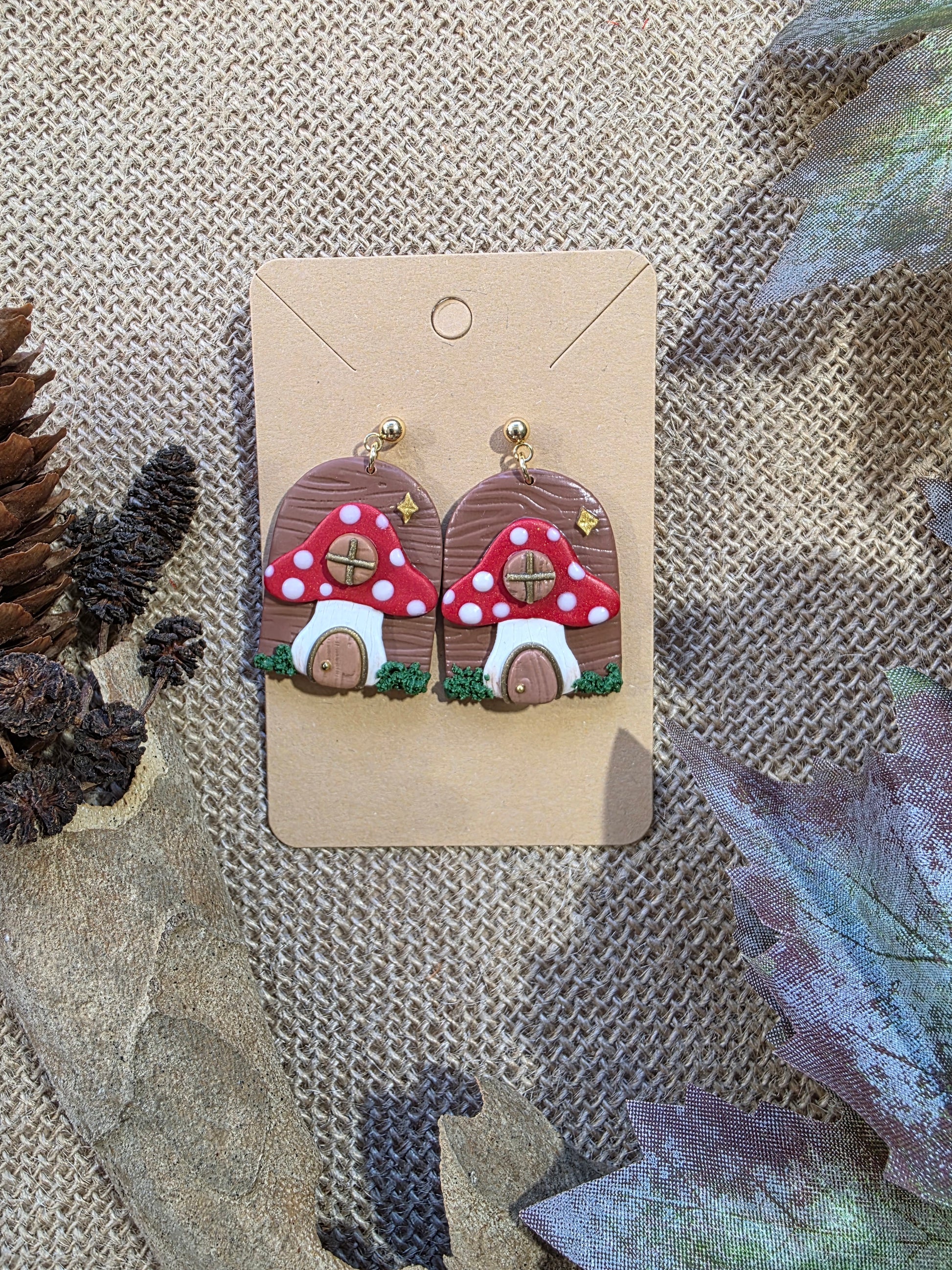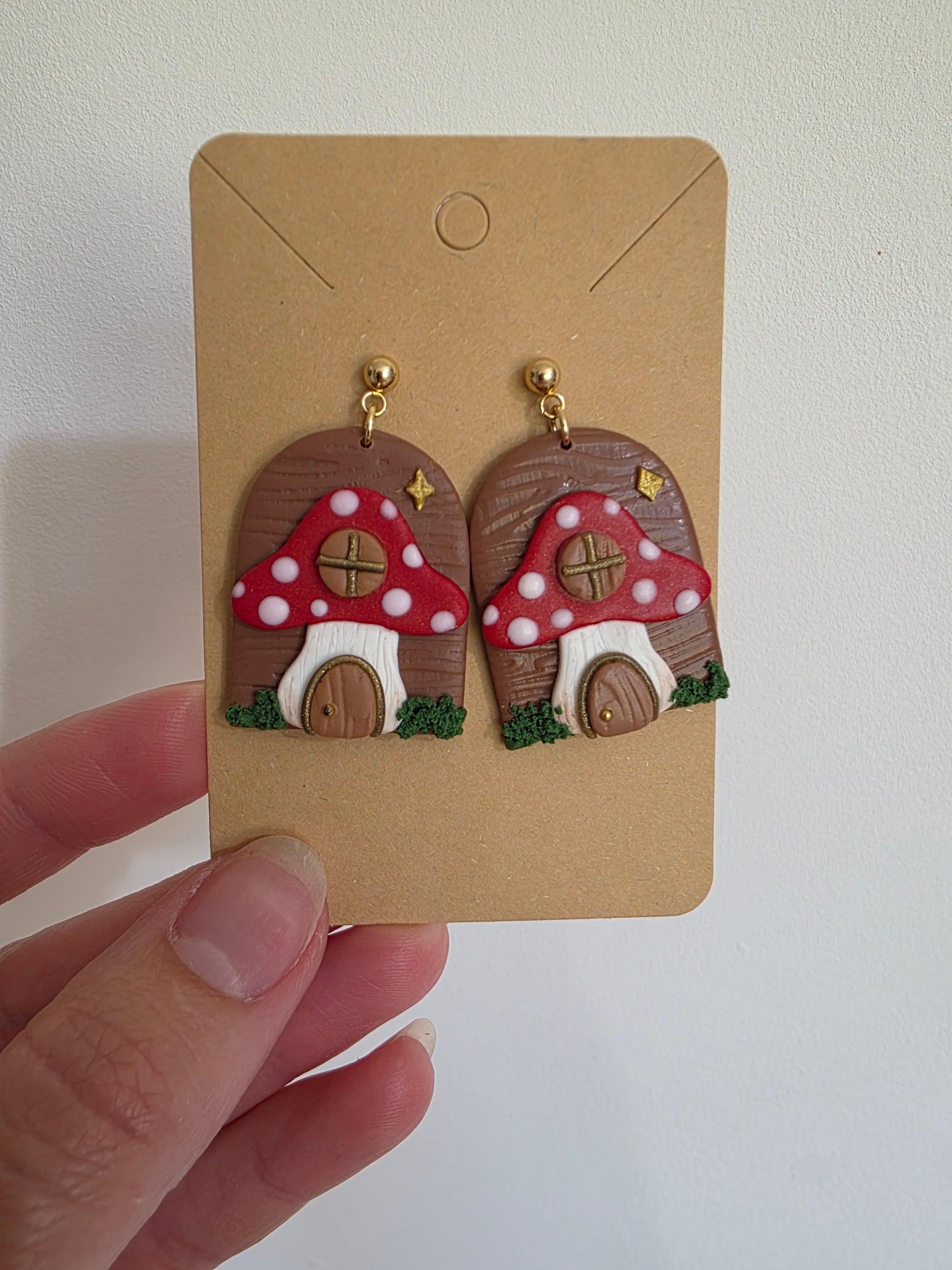Boucles d'oreilles en argile polymère collection MAGIE DES BOIS modèle Maison Champignon - collection automne