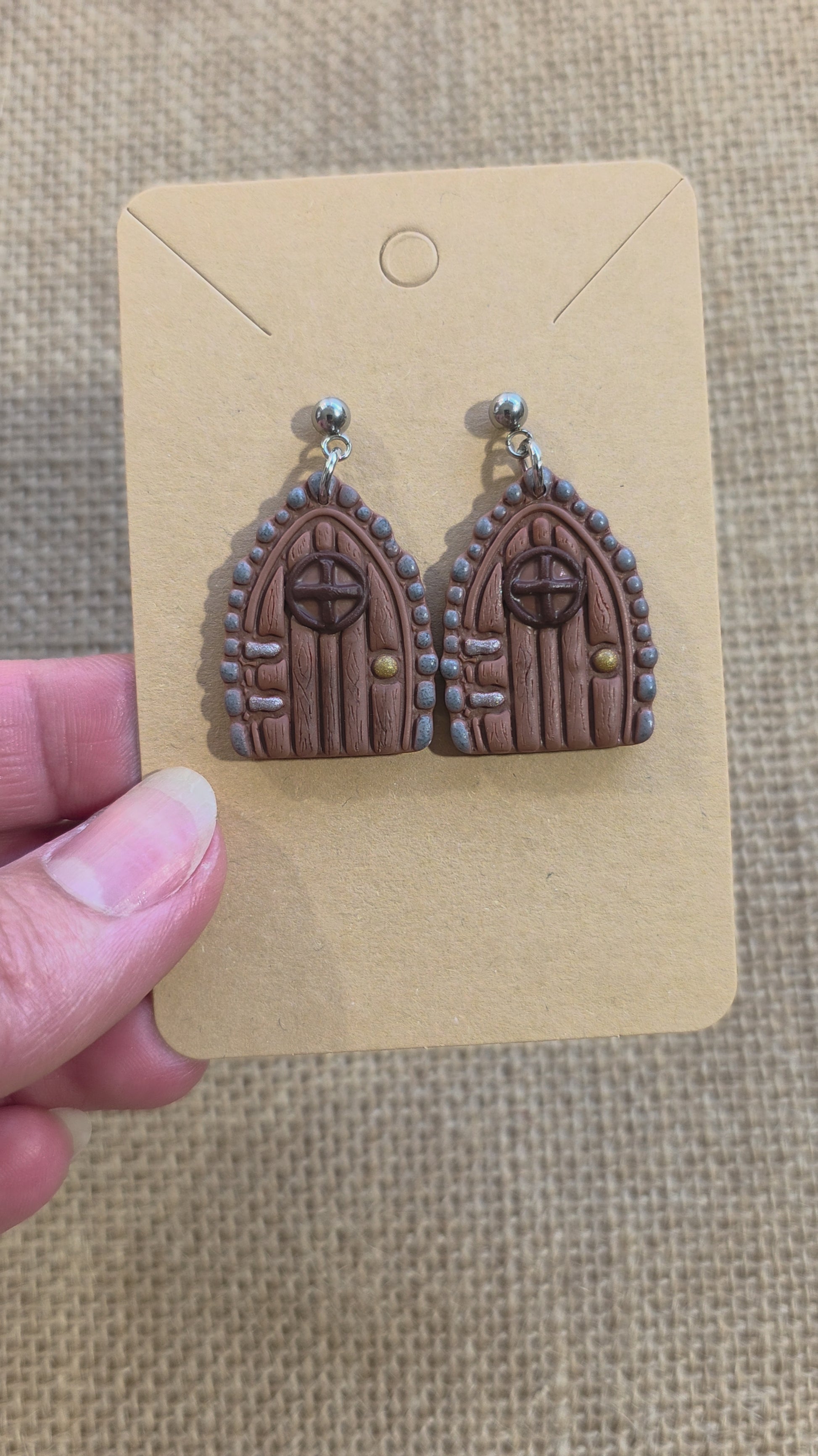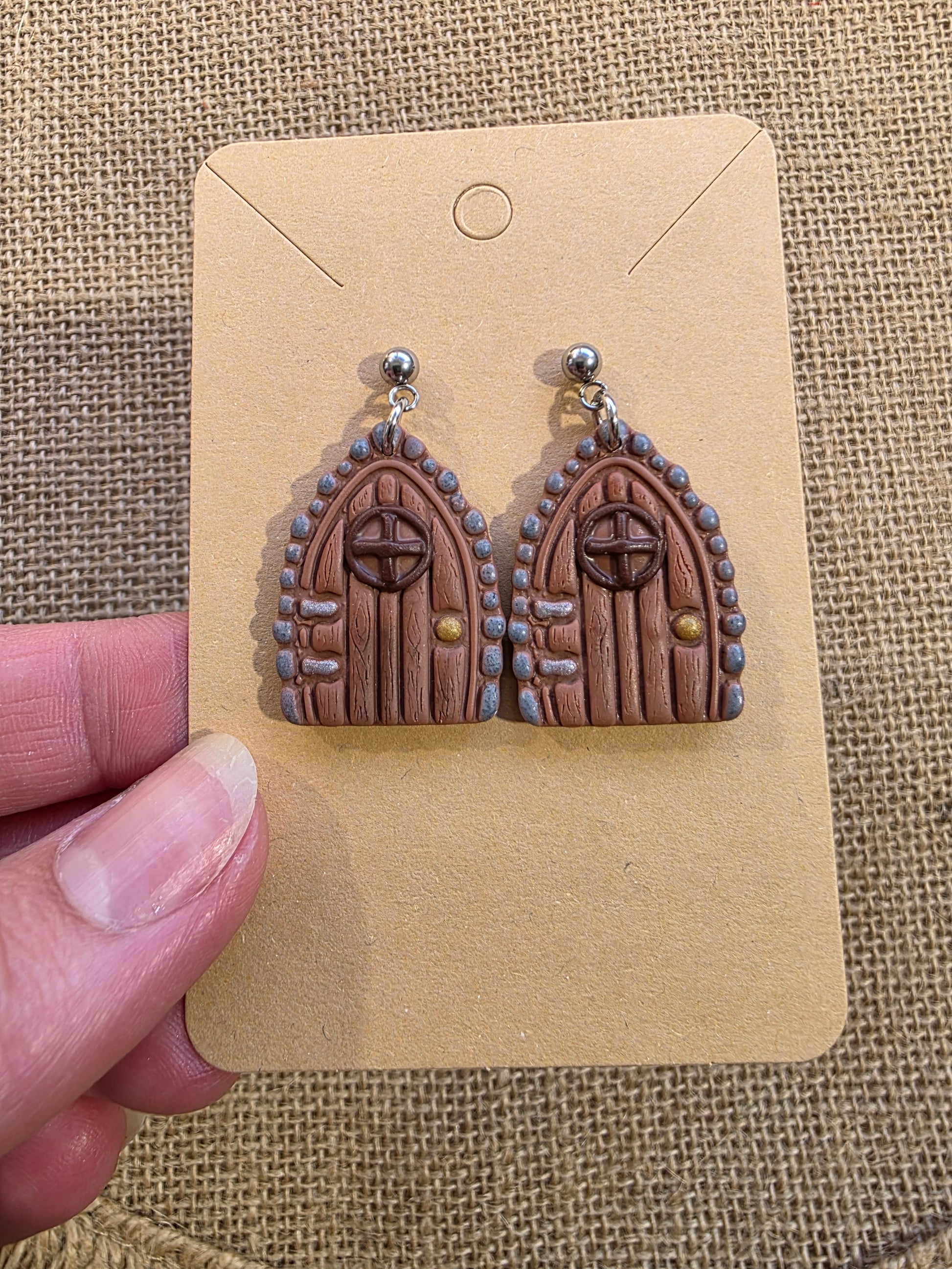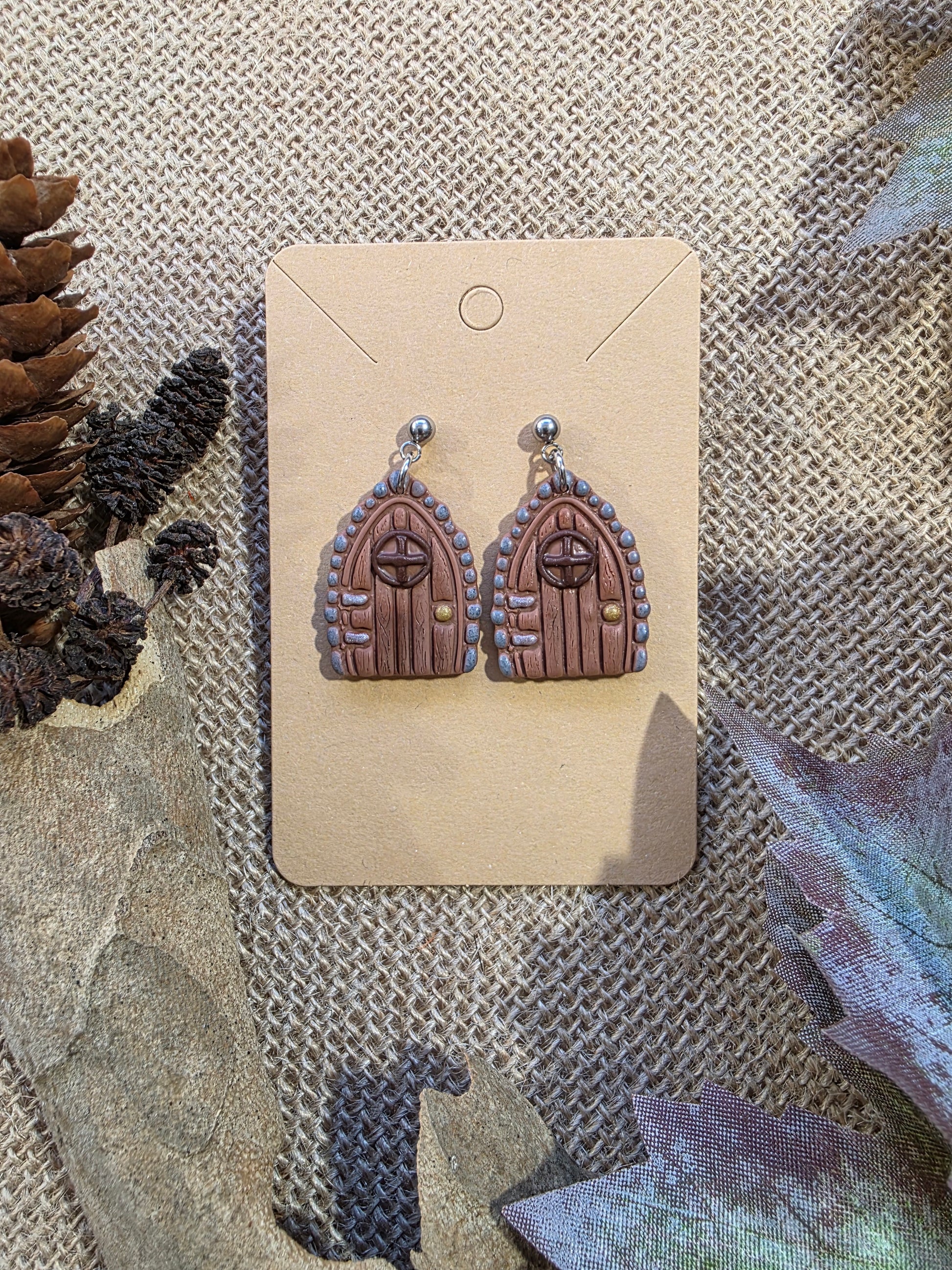 Boucles d'oreilles en argile polymère collection MAGIE DES BOIS modèle Porte enchantée - collection automne