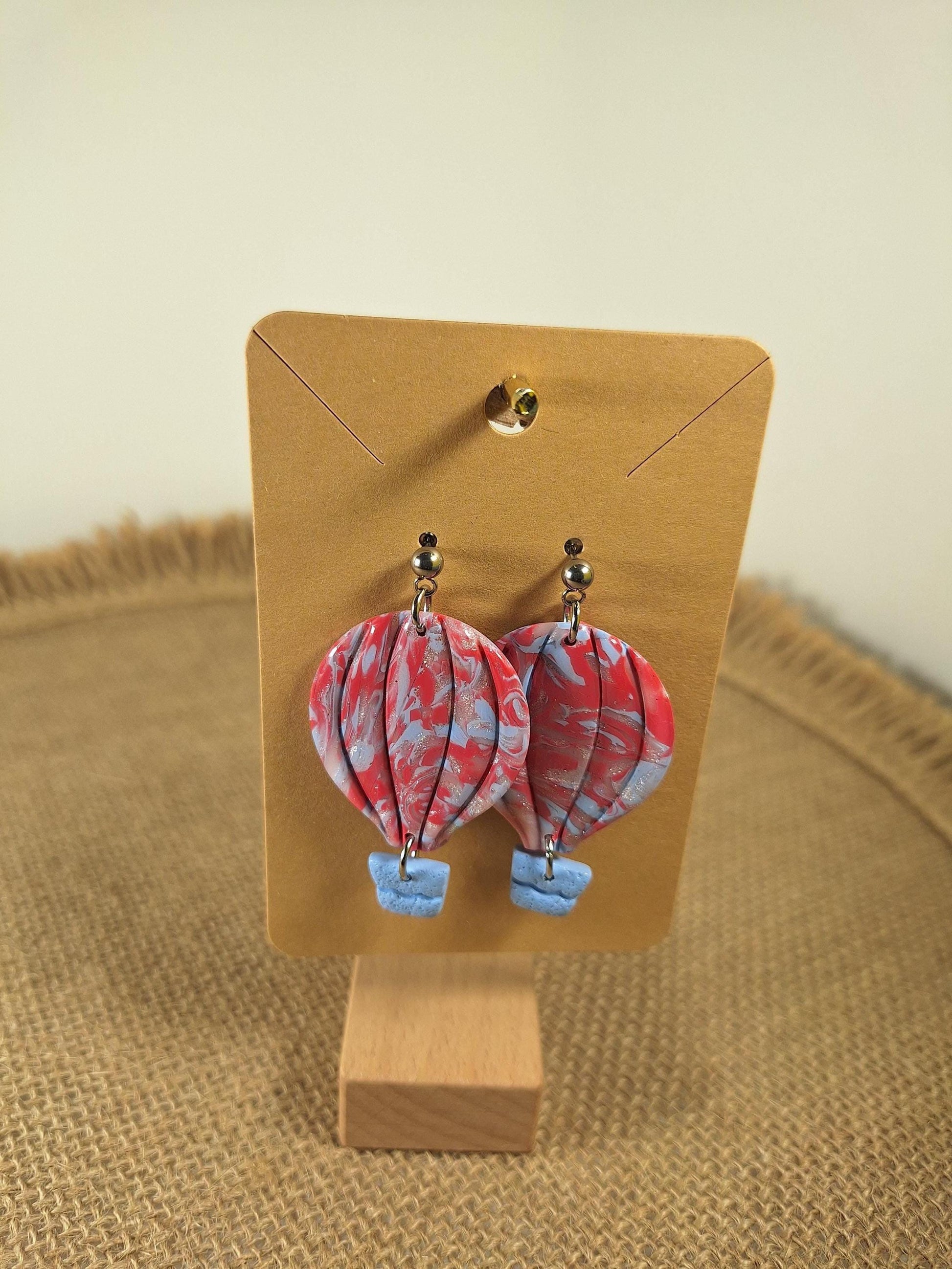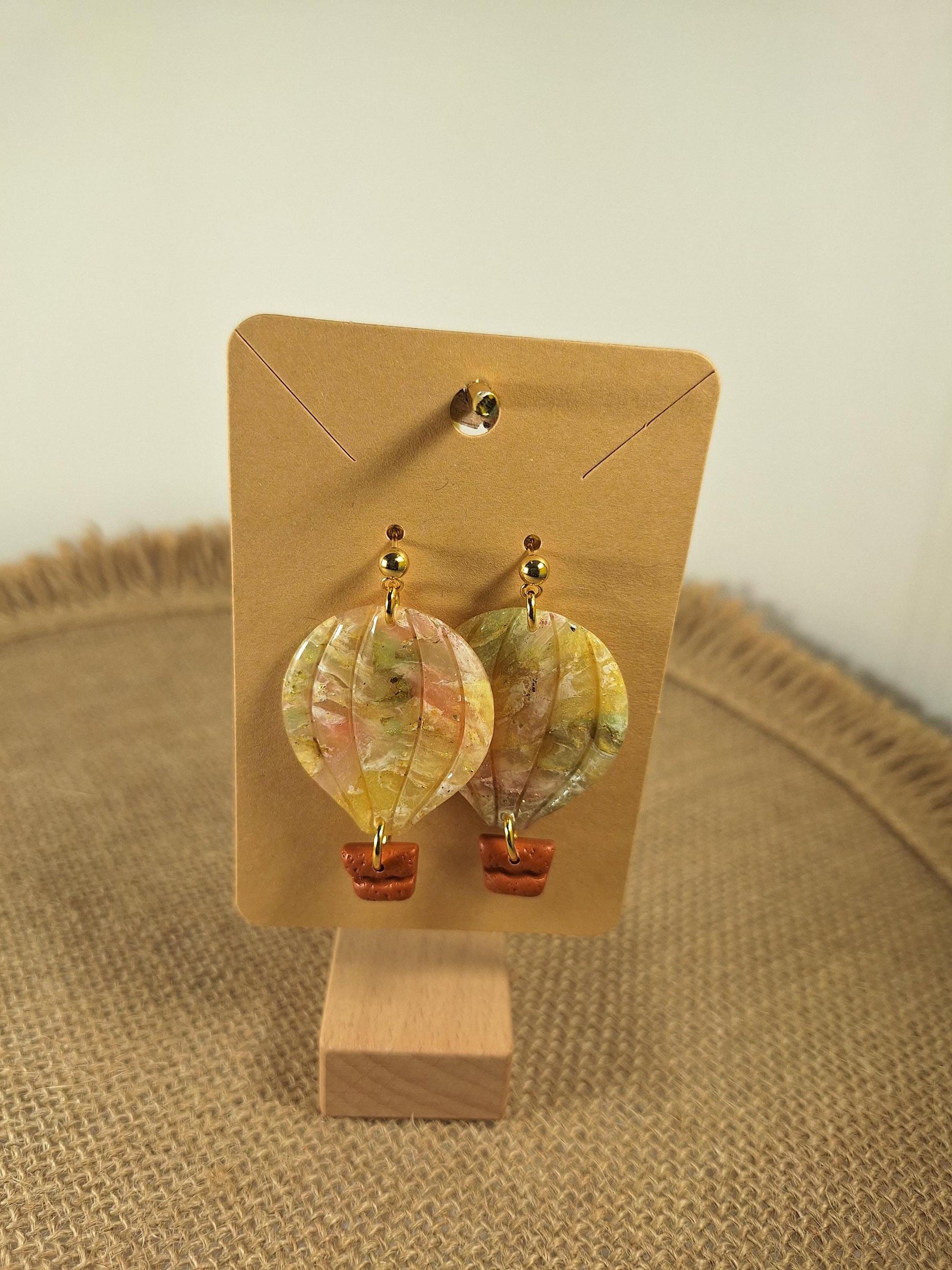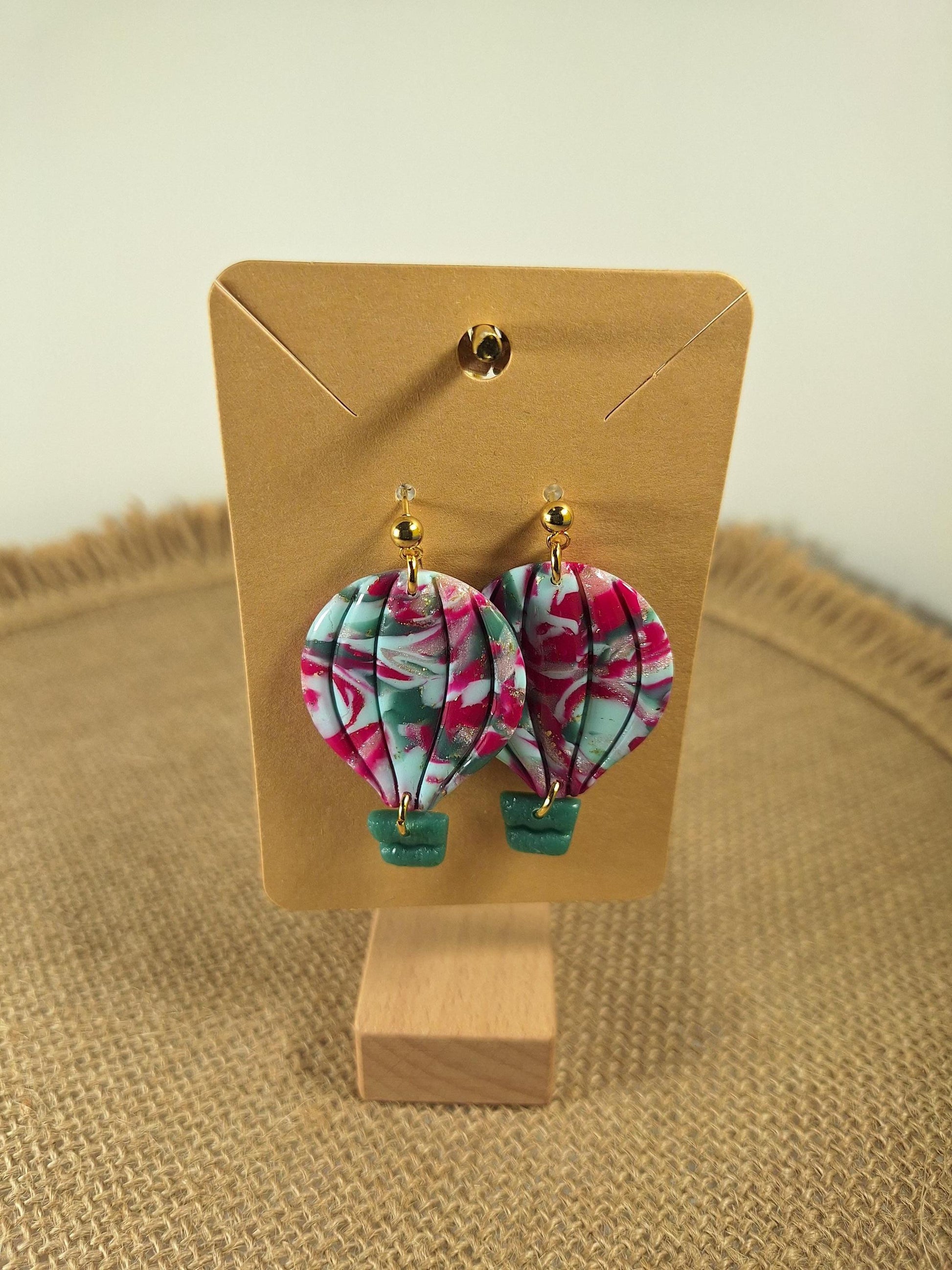 Boucles d'oreilles en argile polymère collection "Rêverie", modèle "Montgolfières".