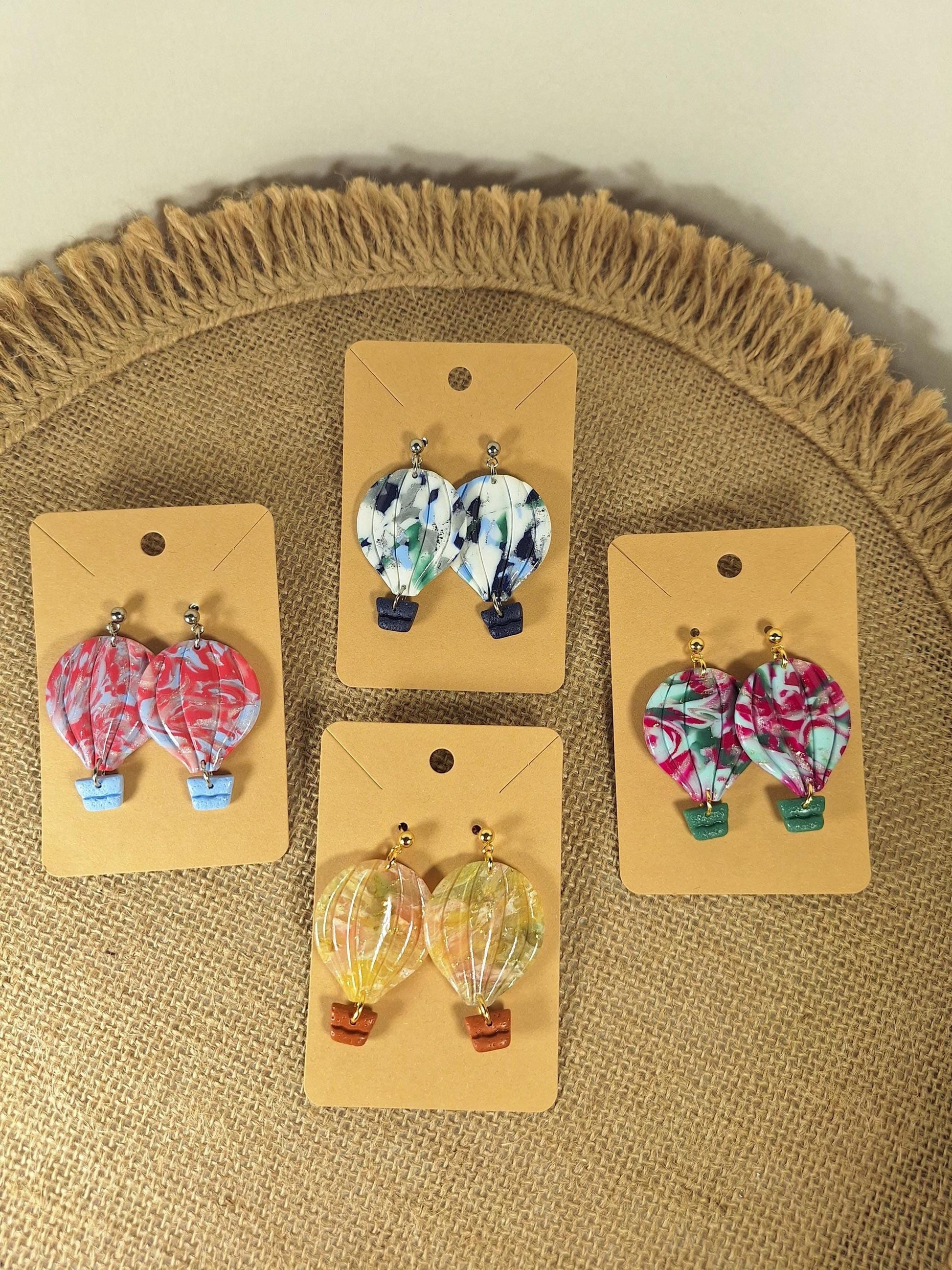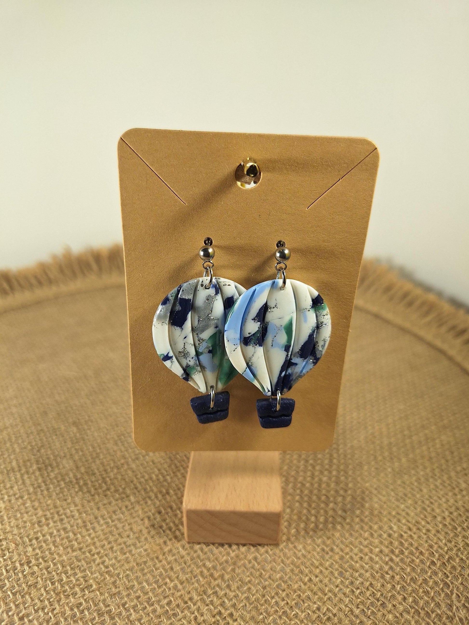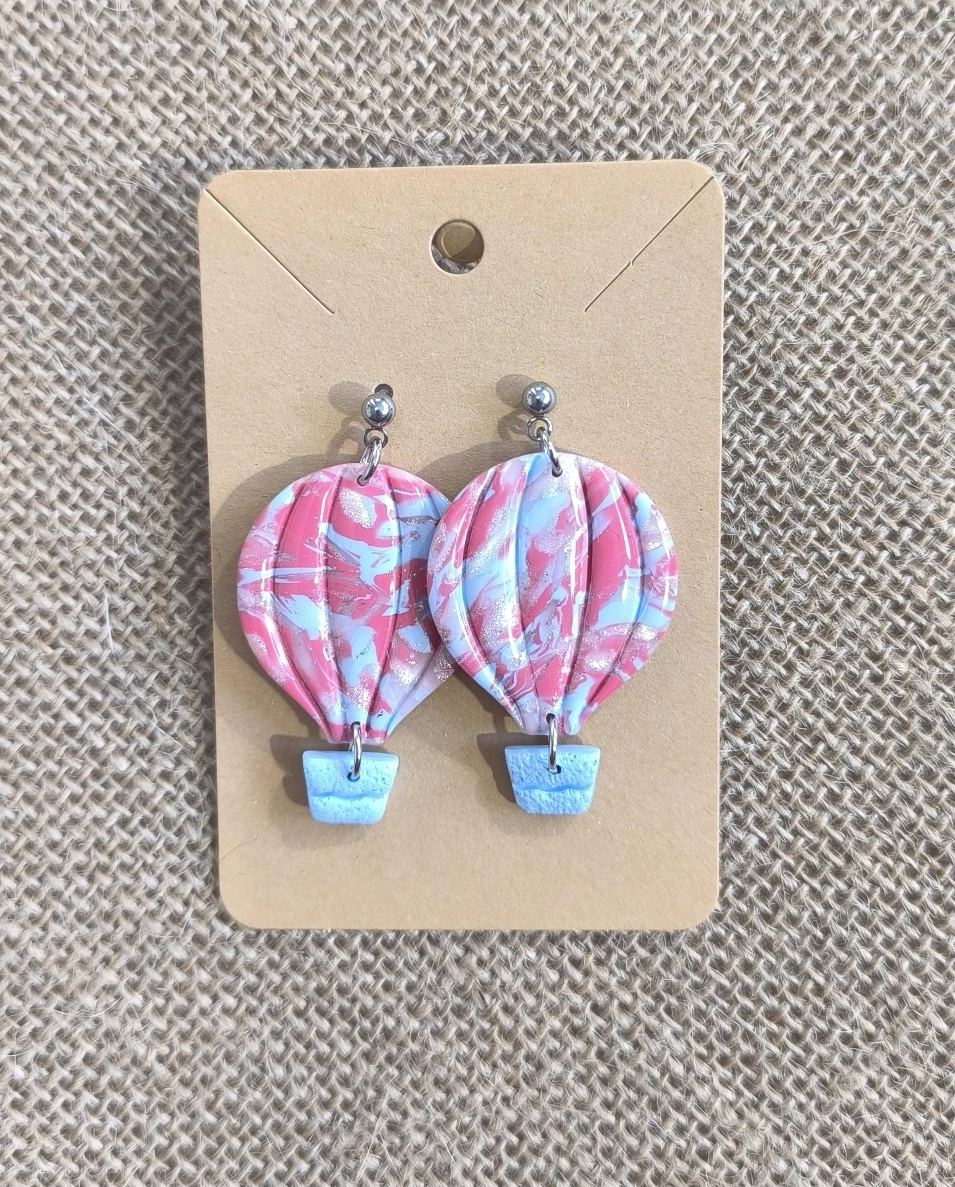 Boucles d'oreilles en argile polymère collection "Rêverie", modèle "Montgolfières".