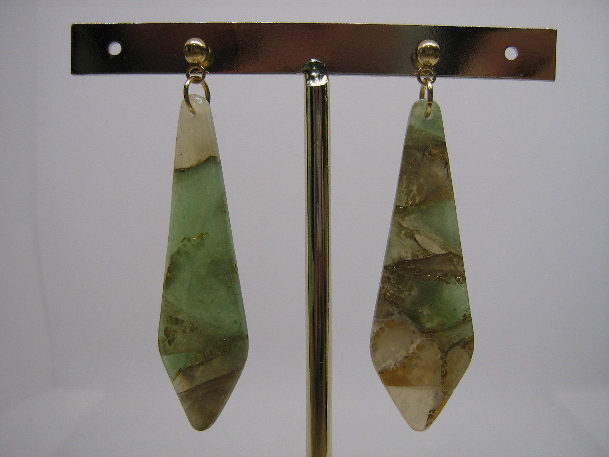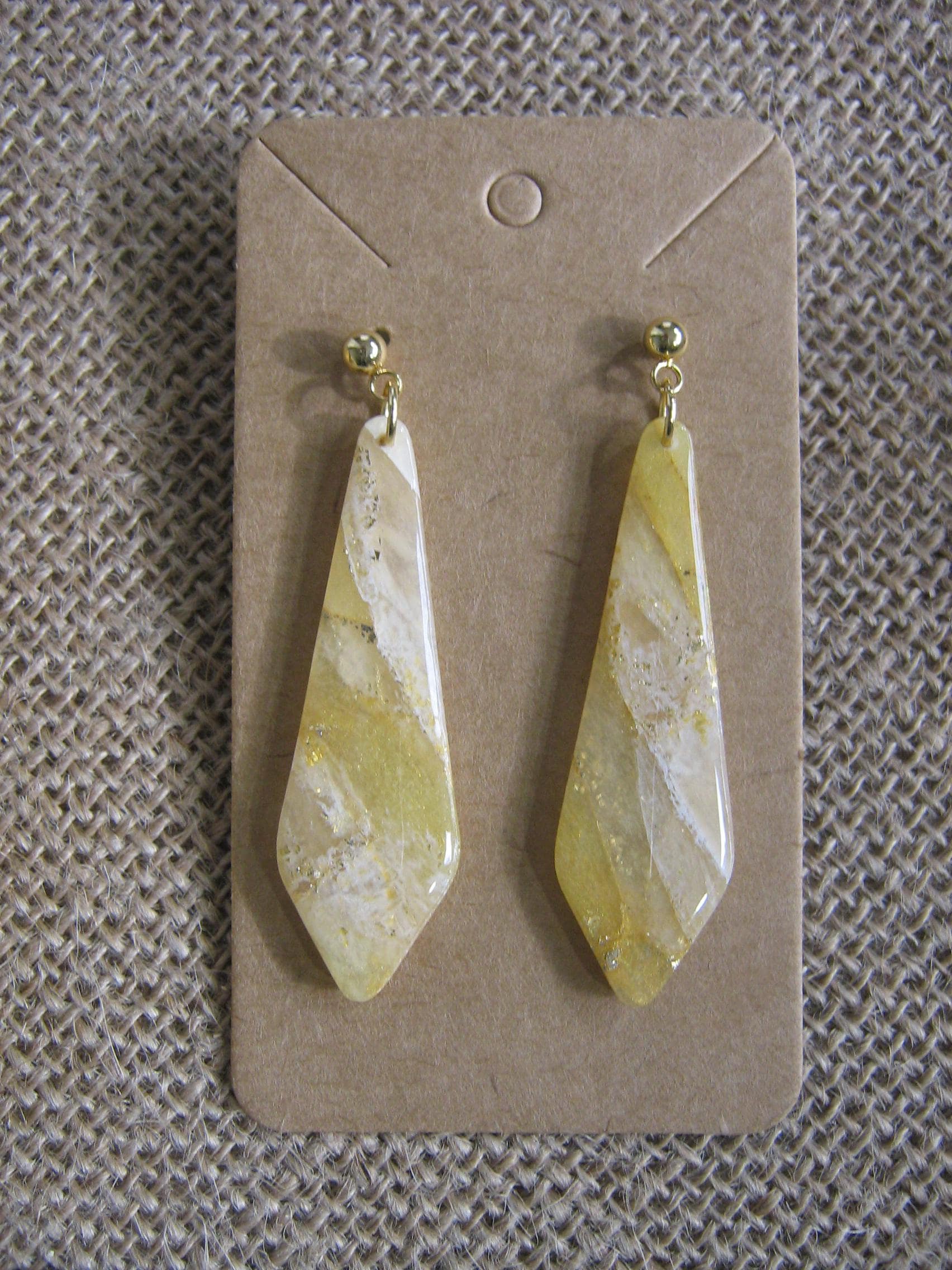 Tous nos bijoux sont assemblés avec des apprêts en acier inoxydable ou acier inoxydable plaqué or. Des apprêts dorés sont utilisés pour ce modèle.