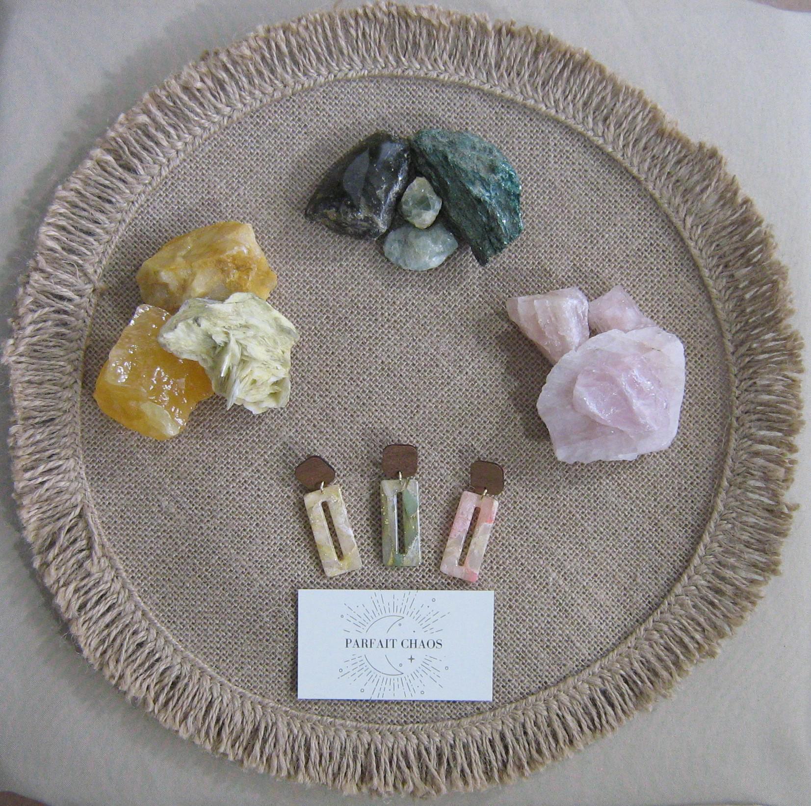 Boucles d'oreilles en argile polymère Pierres de Renaissance modèle Catherina
