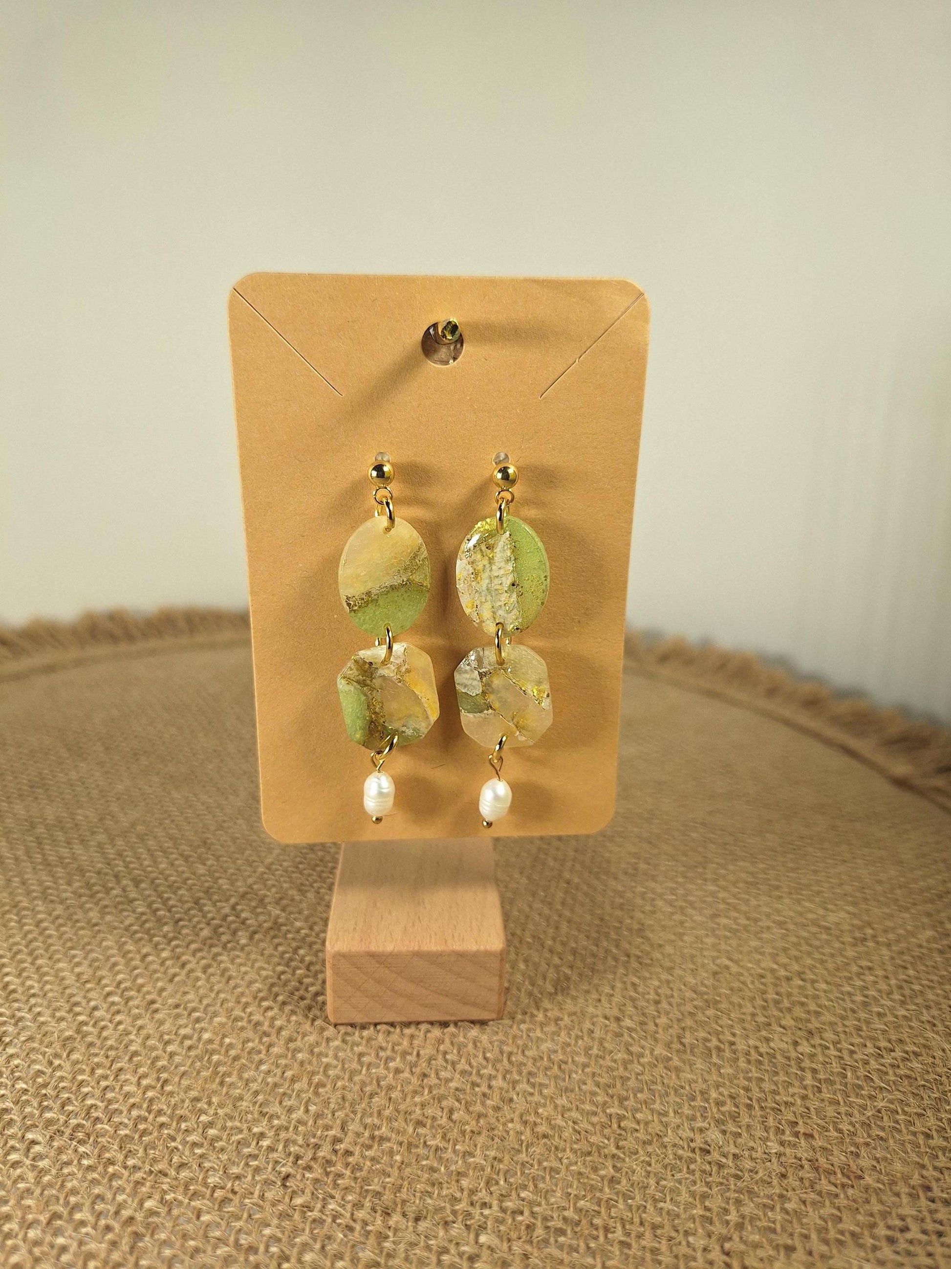 Boucles d'oreilles en argile polymère Pierres de Renaissance modèle Olga