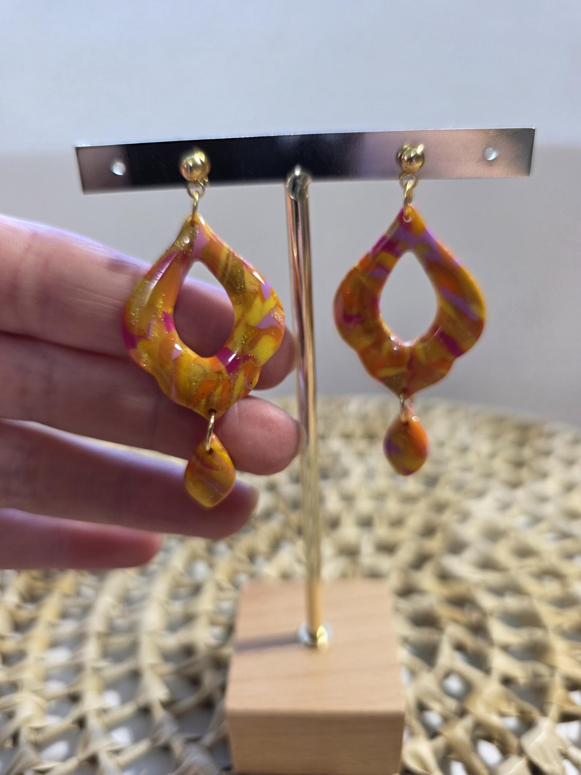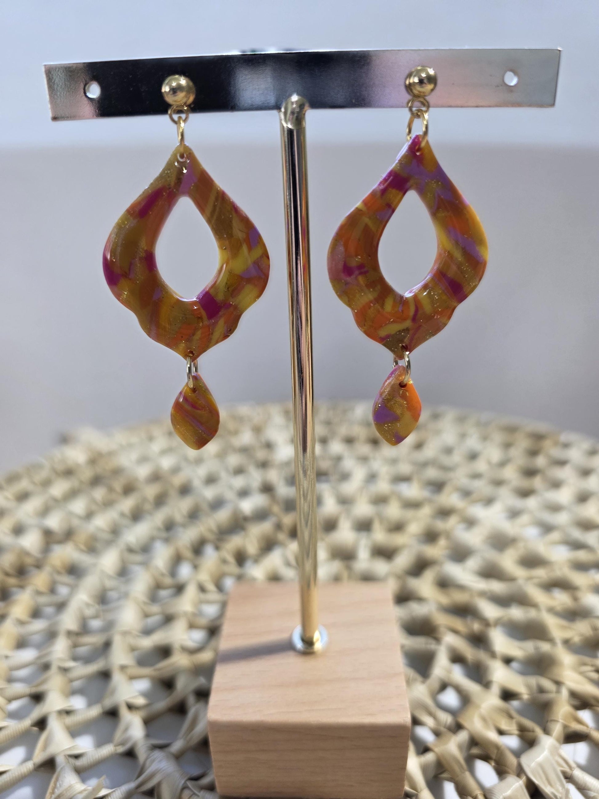 Boucles d'oreilles Jasmine, teinte "Sunset" en argile polymère, collection Sol, été 25