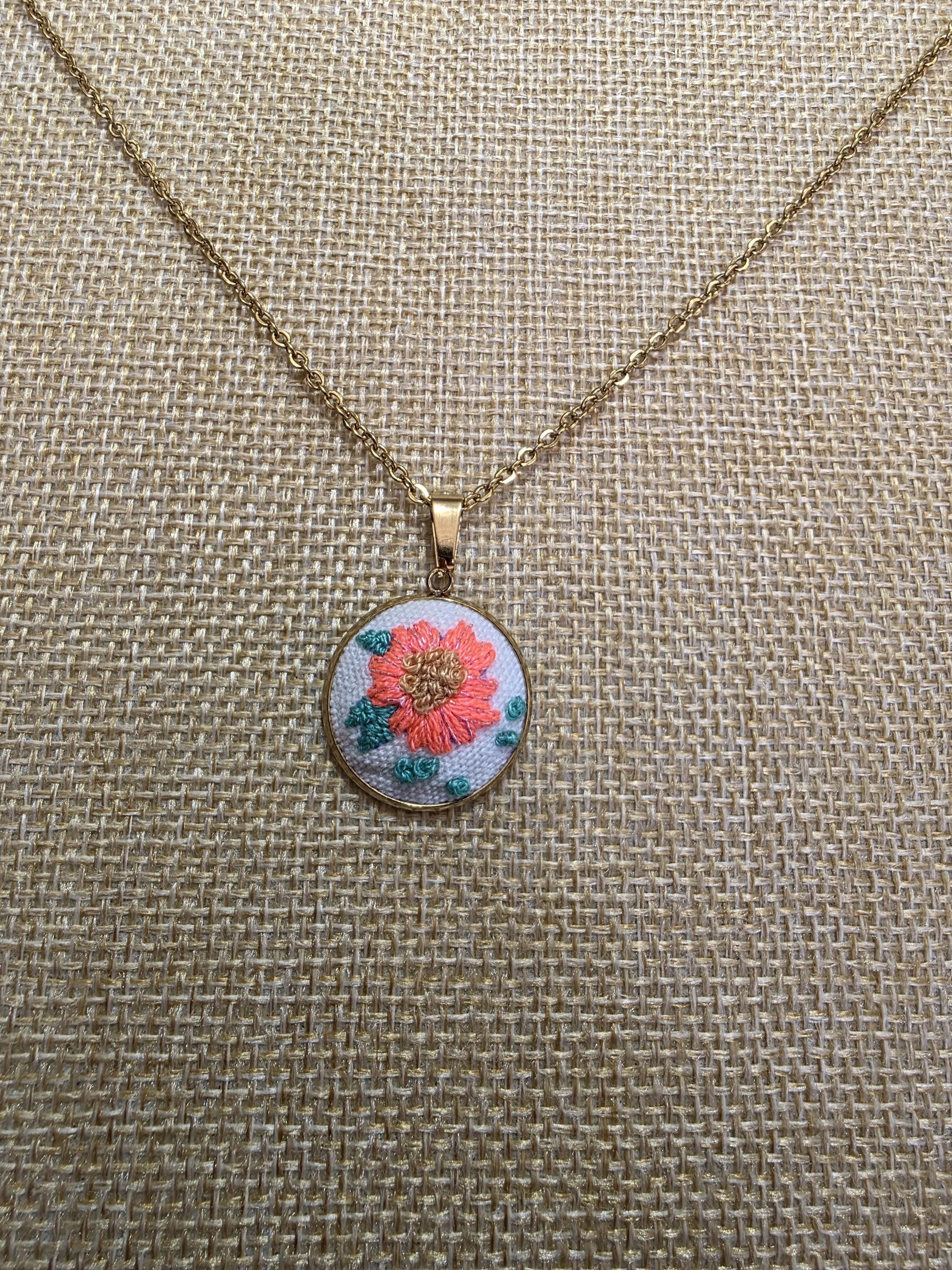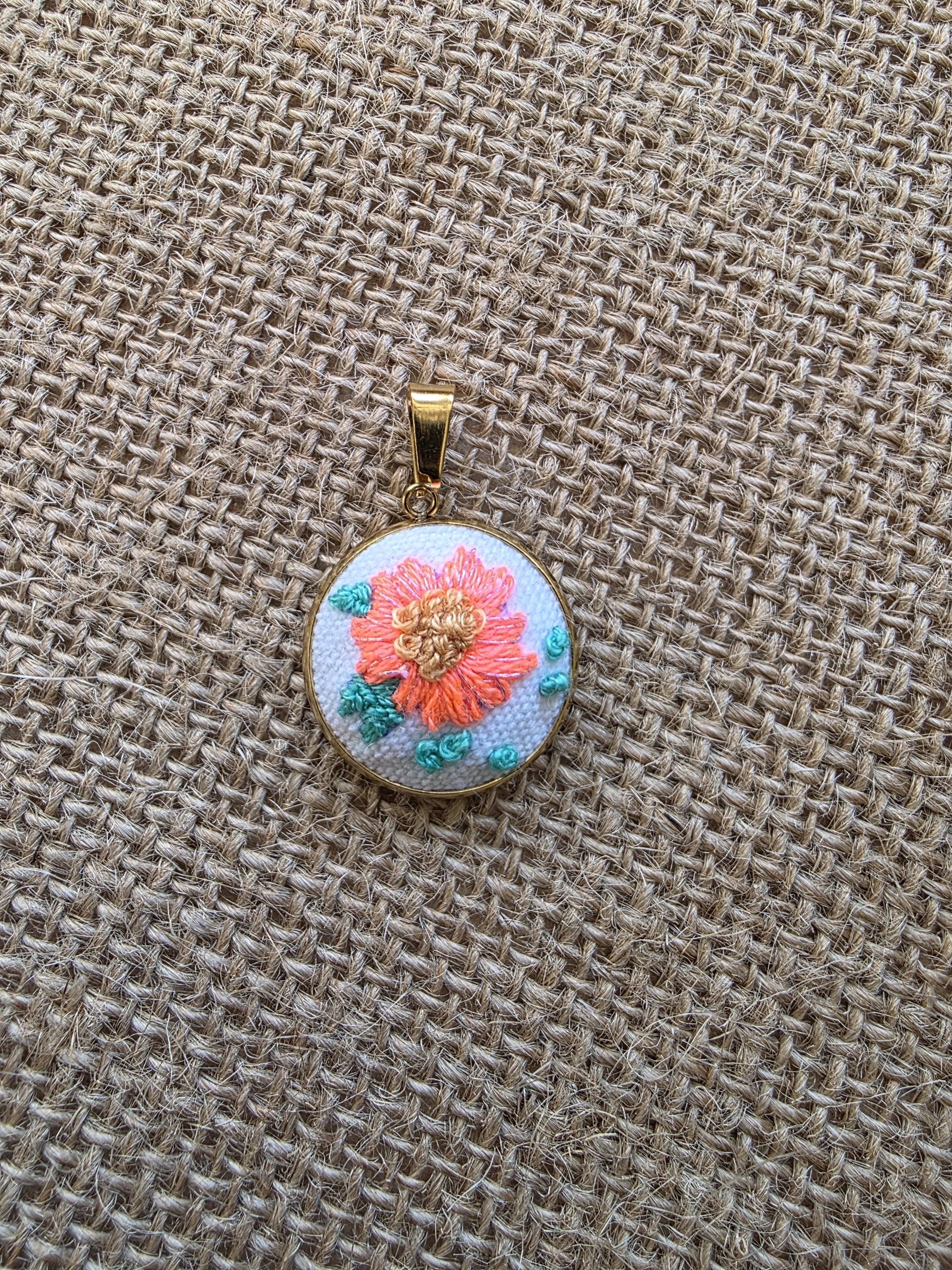 Parfait Chaos vous propose ce délicat collier avec un pendentif brodé à la main.