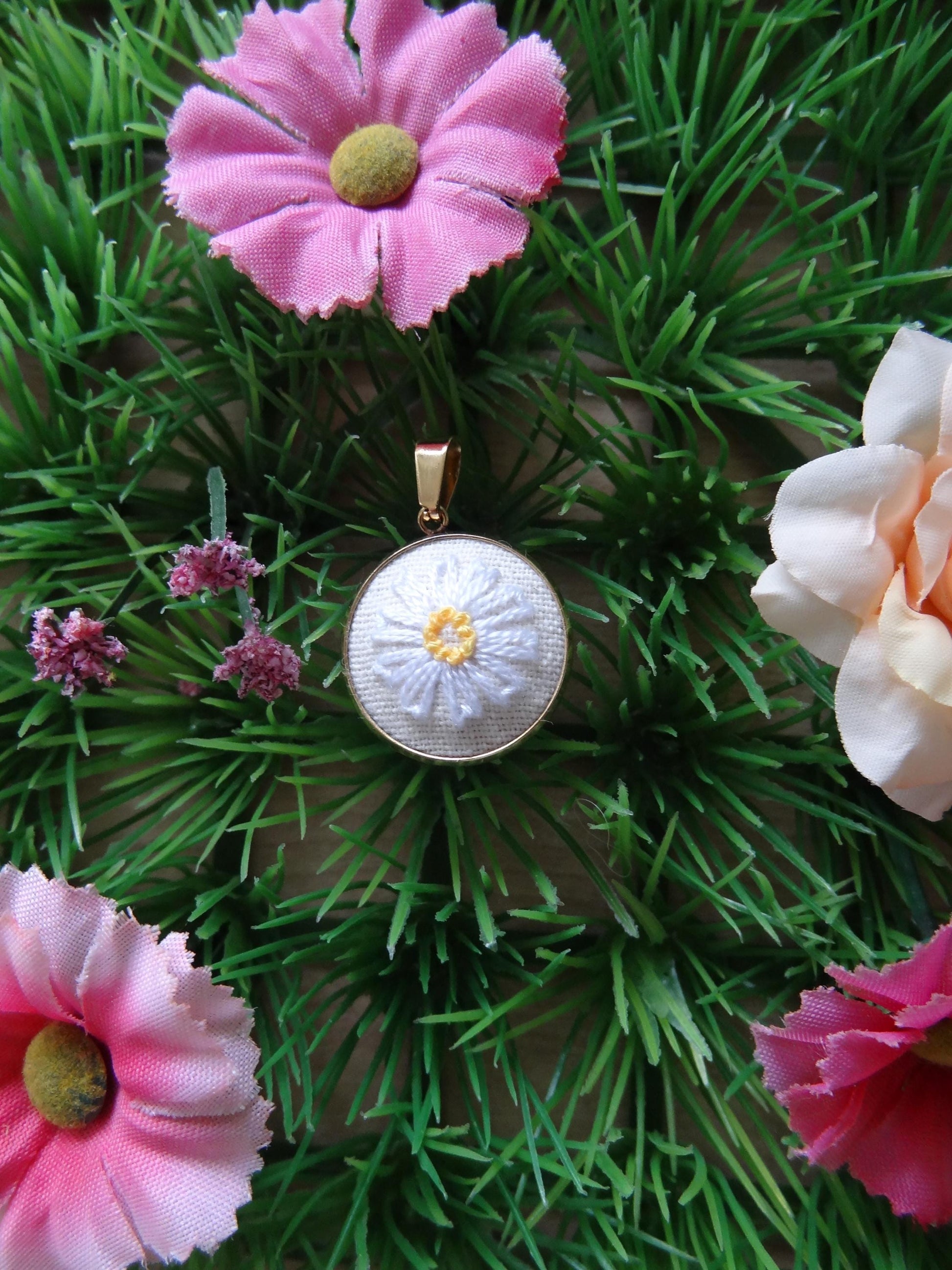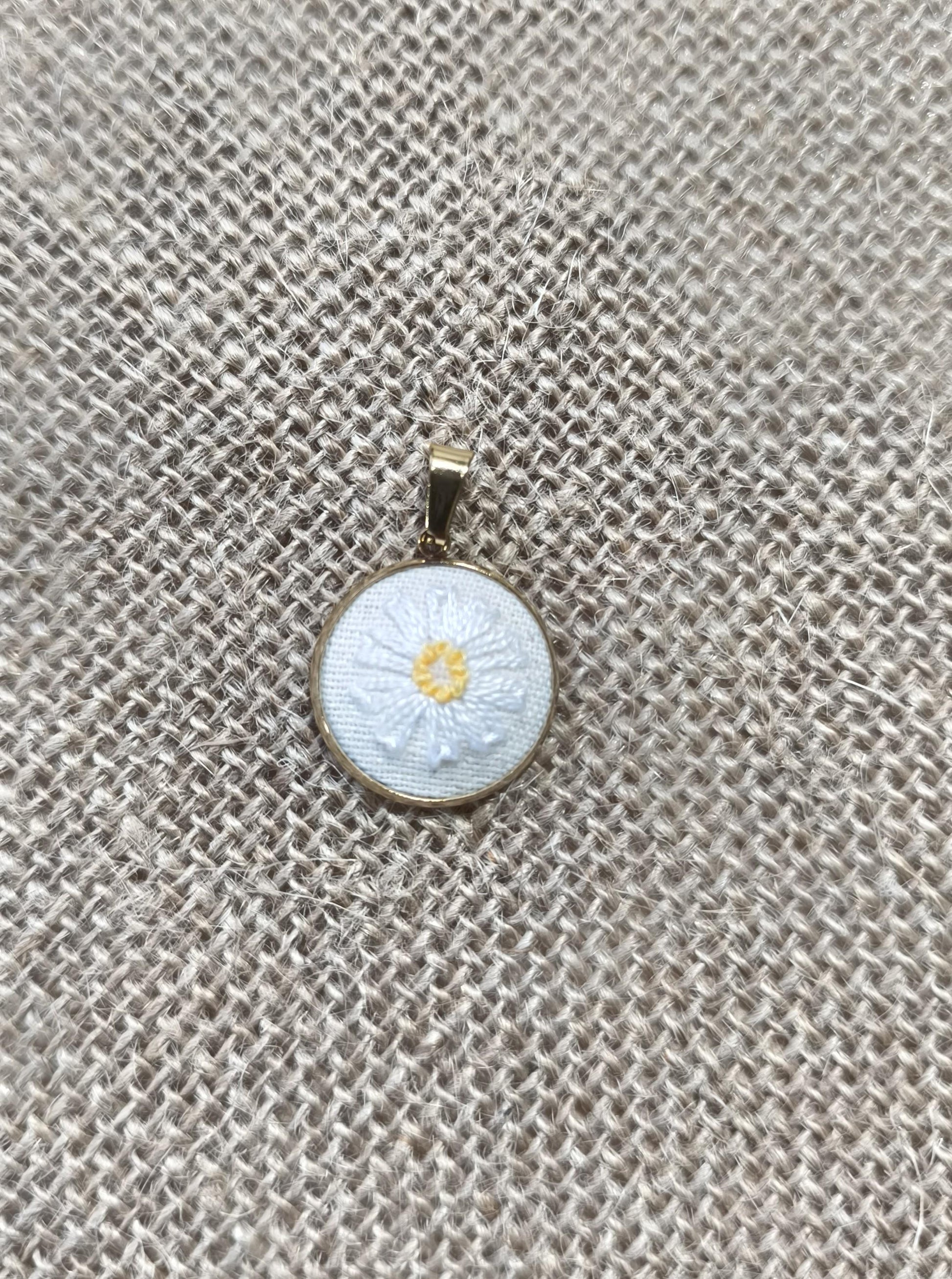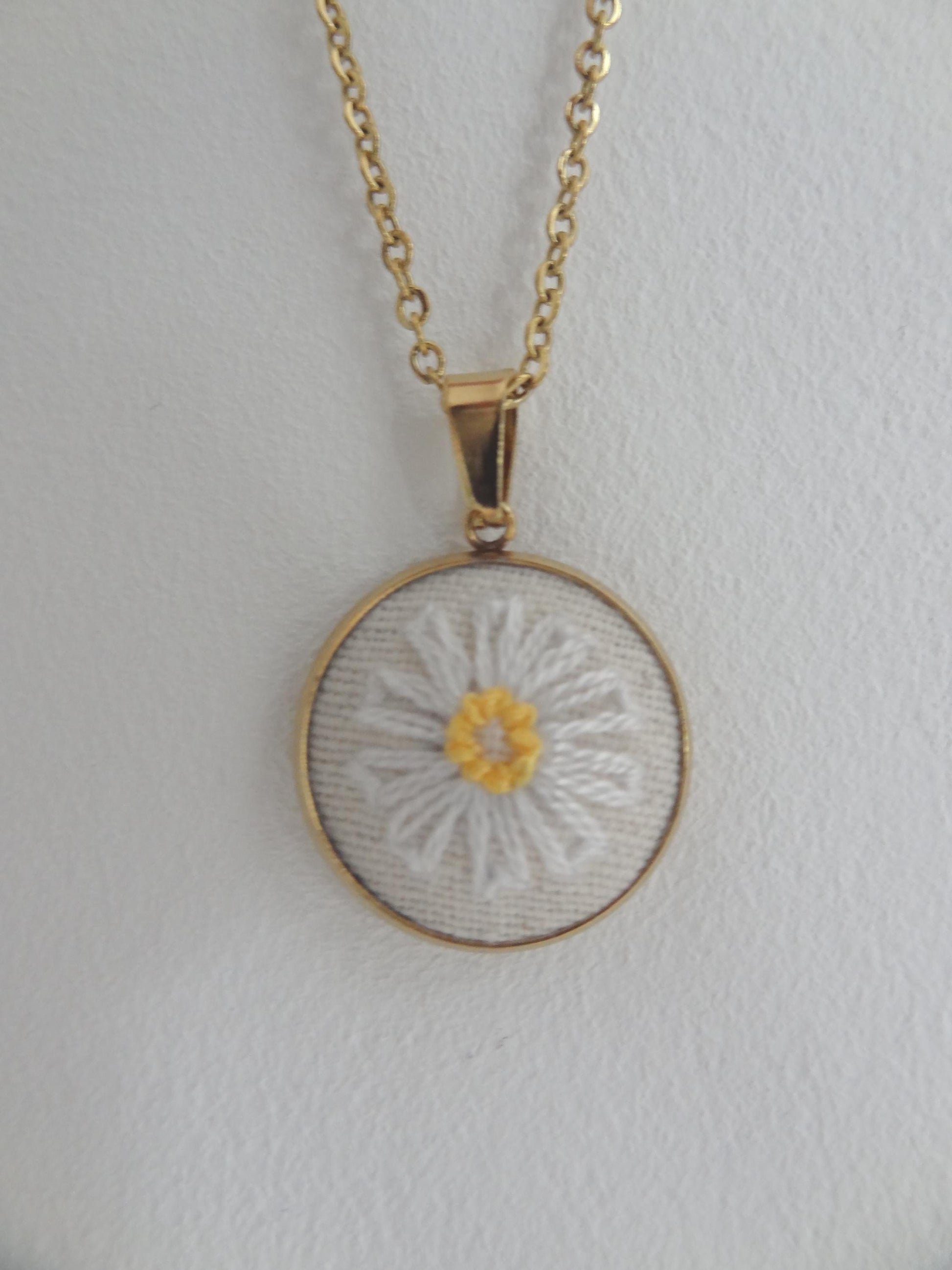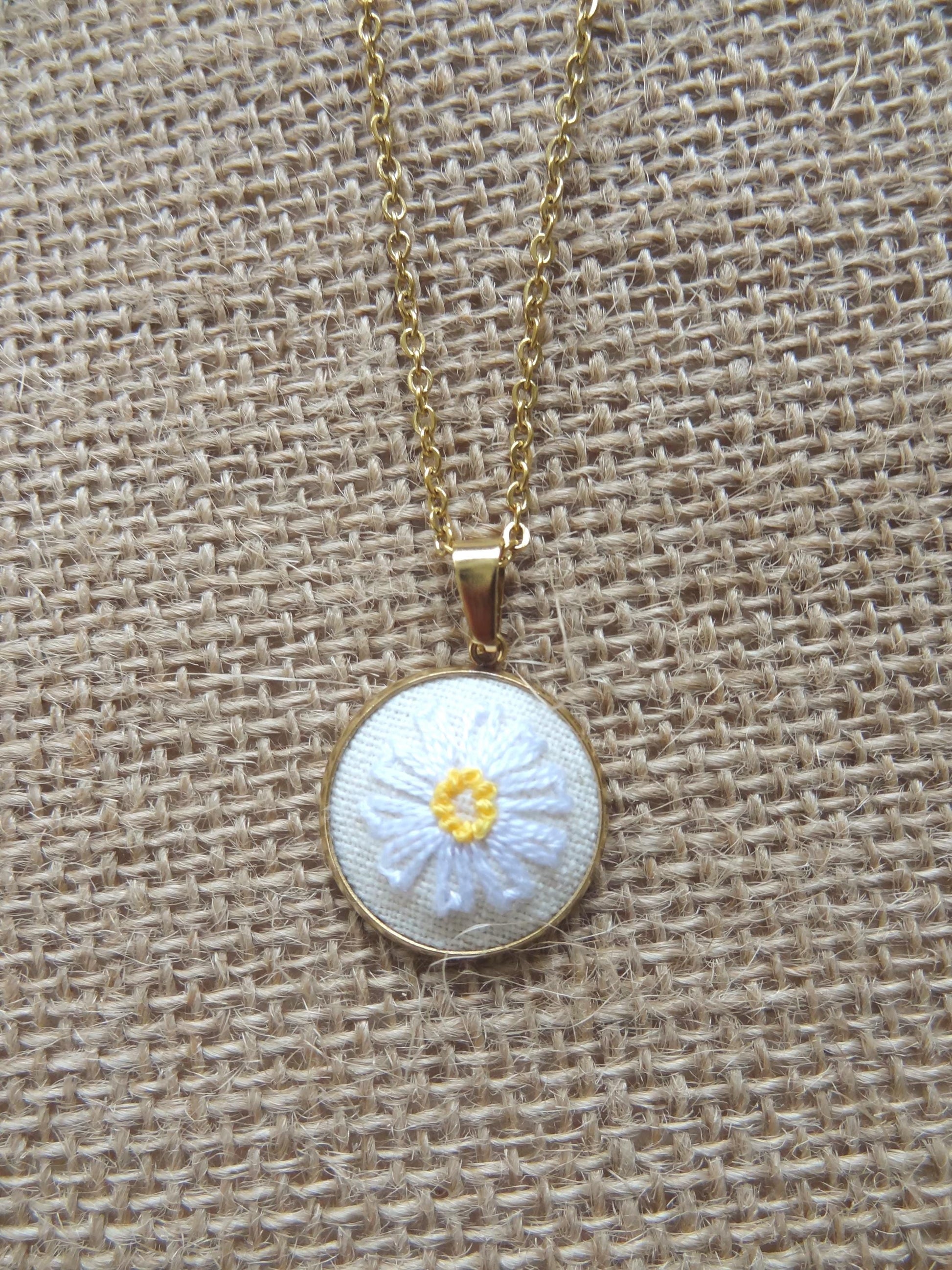 Parfait Chaos vous propose ce délicat collier avec un pendentif brodé à la main.