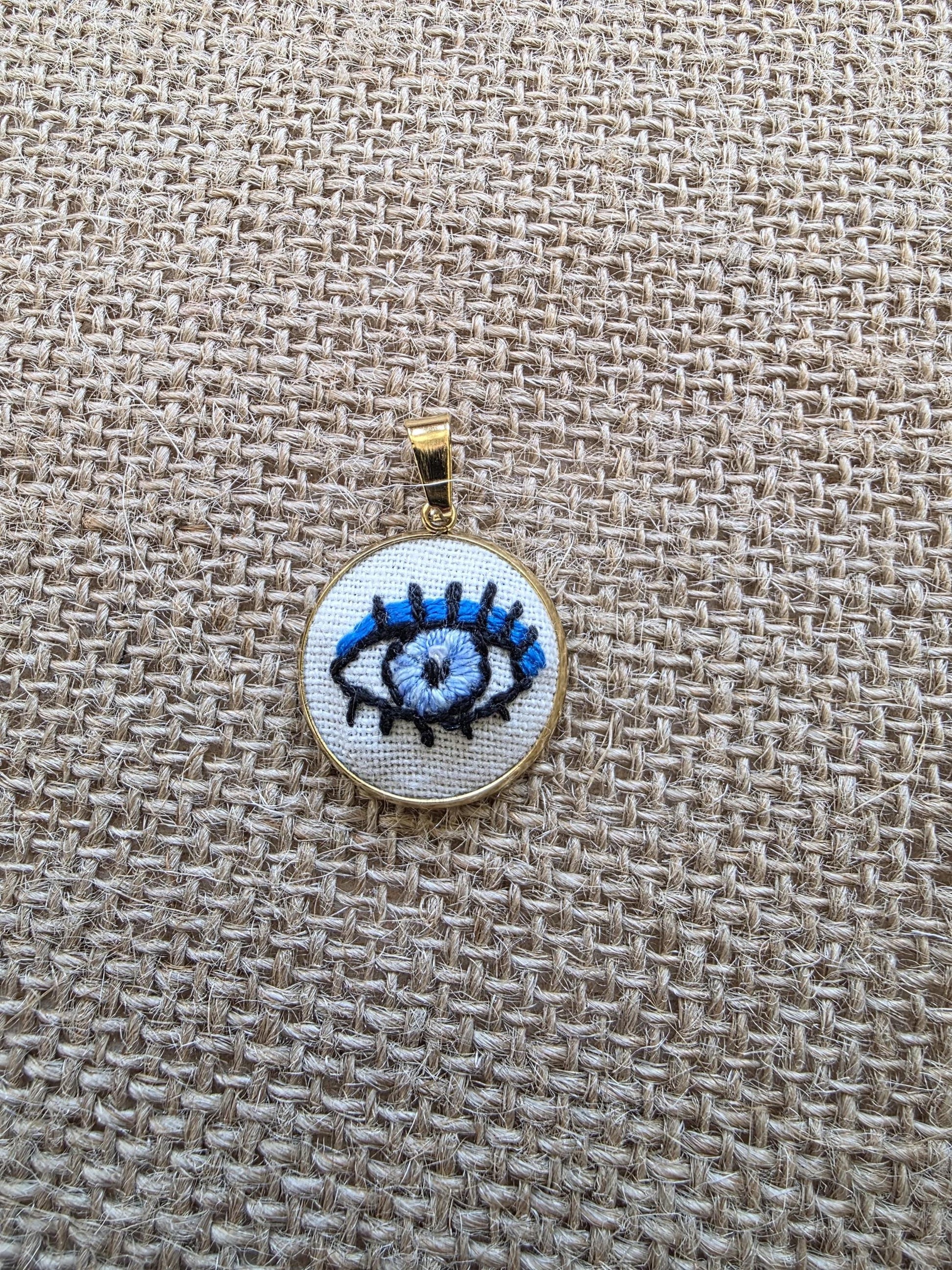 Parfait Chaos vous propose ce délicat collier avec un pendentif brodé à la main.