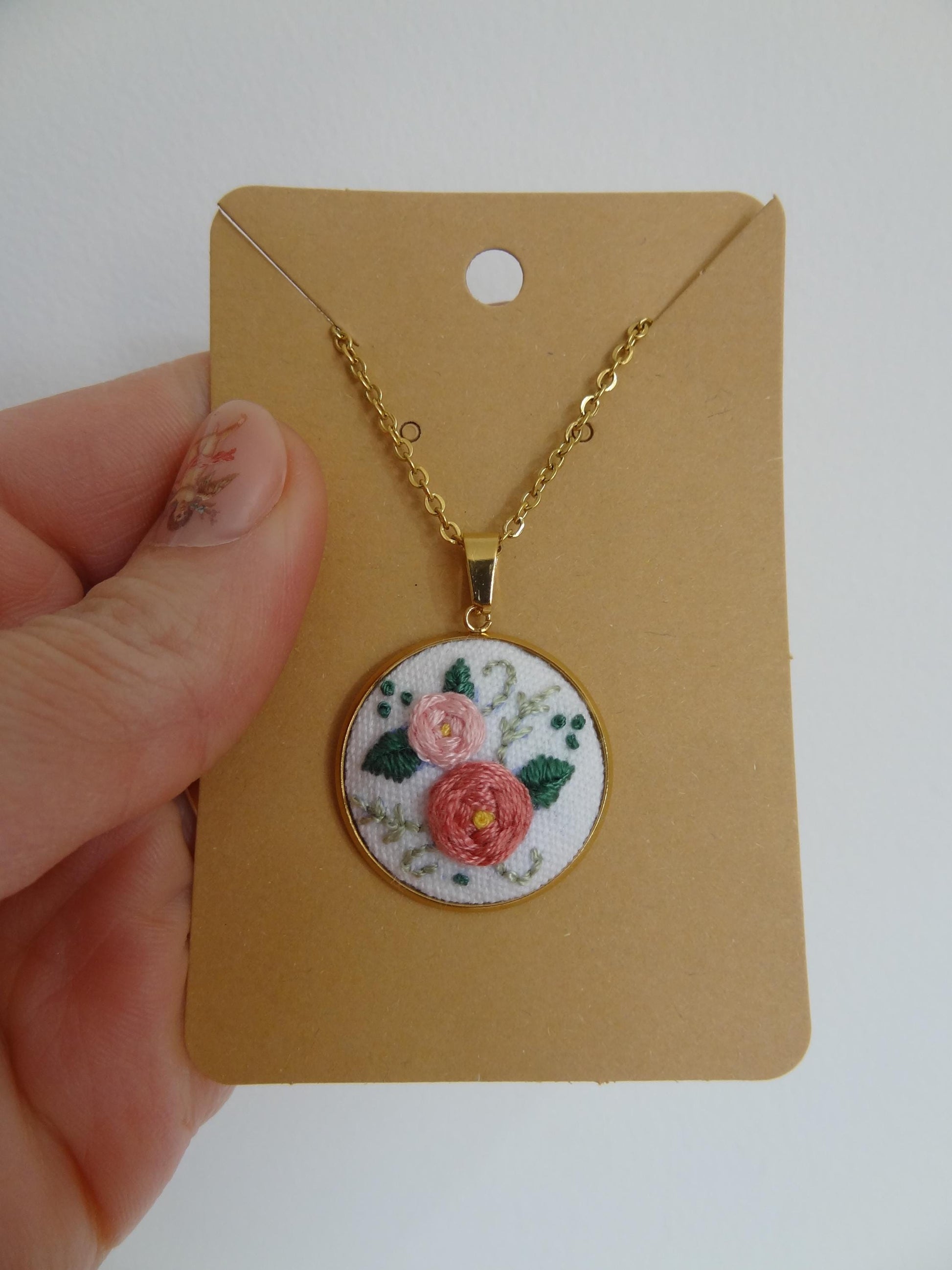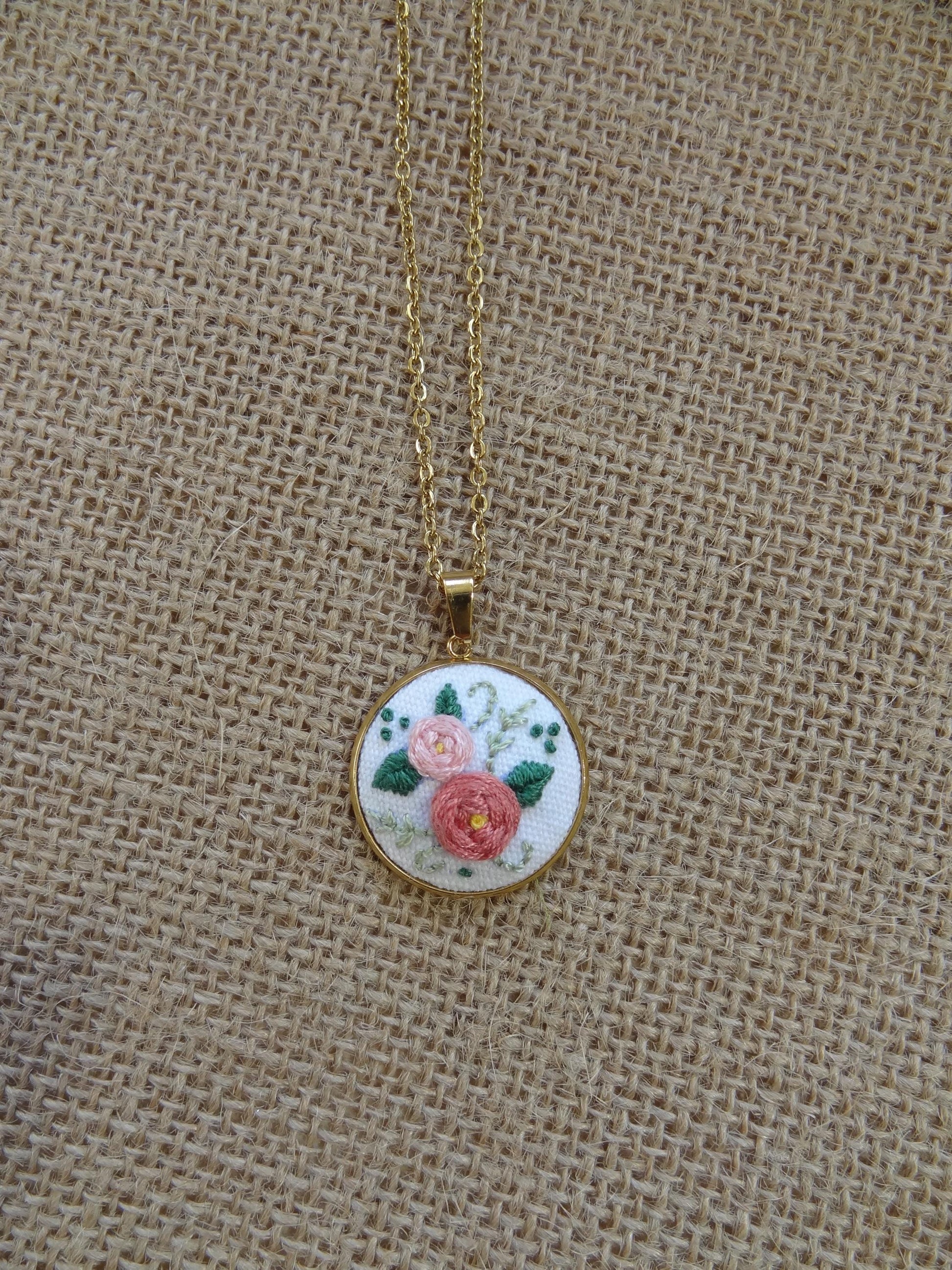 Parfait Chaos vous propose ce délicat collier avec un pendentif brodé à la main.