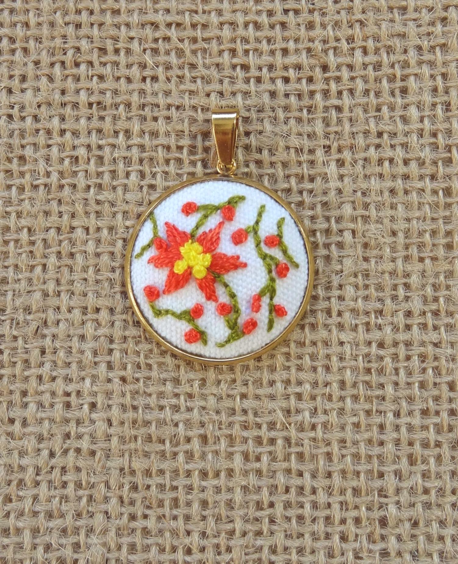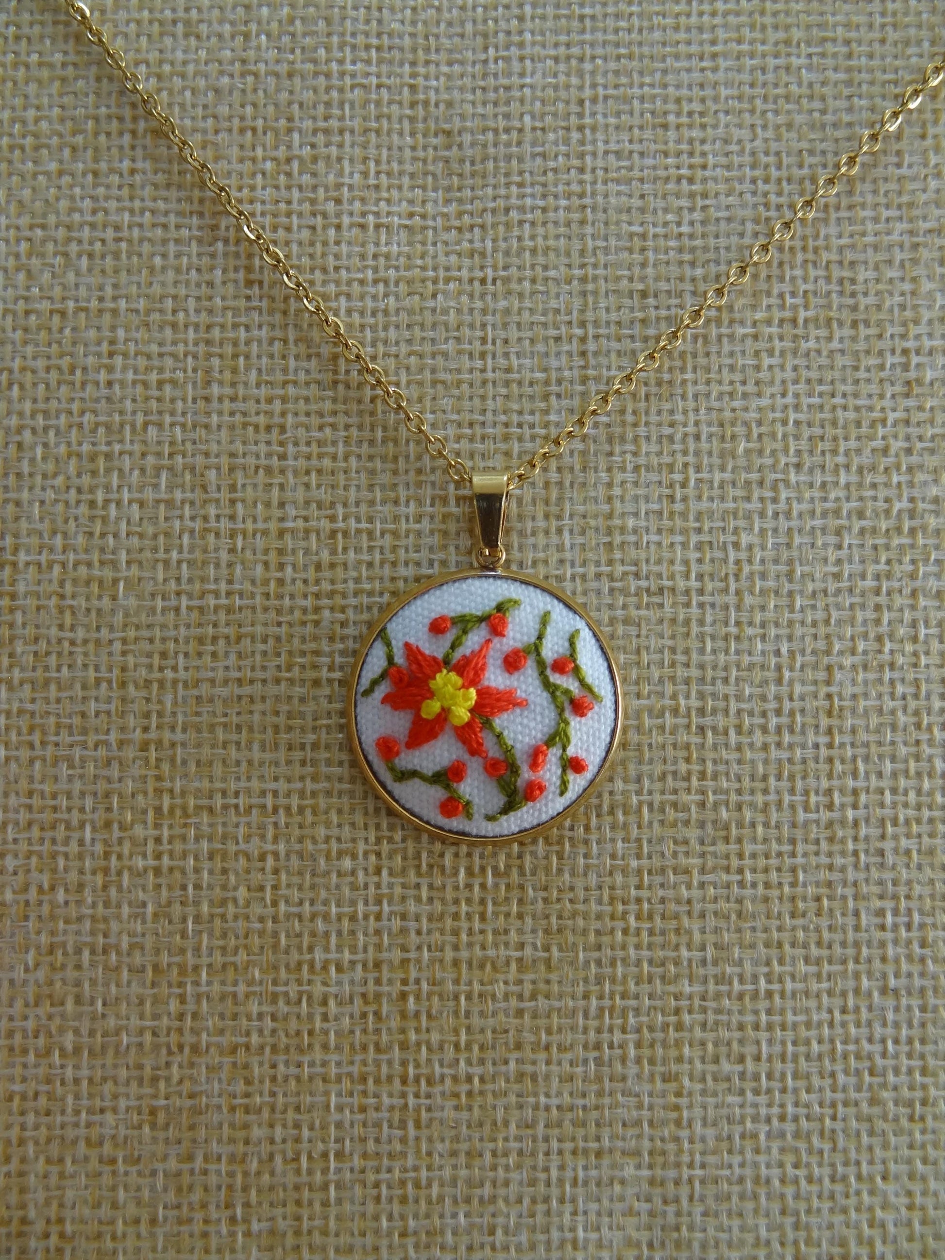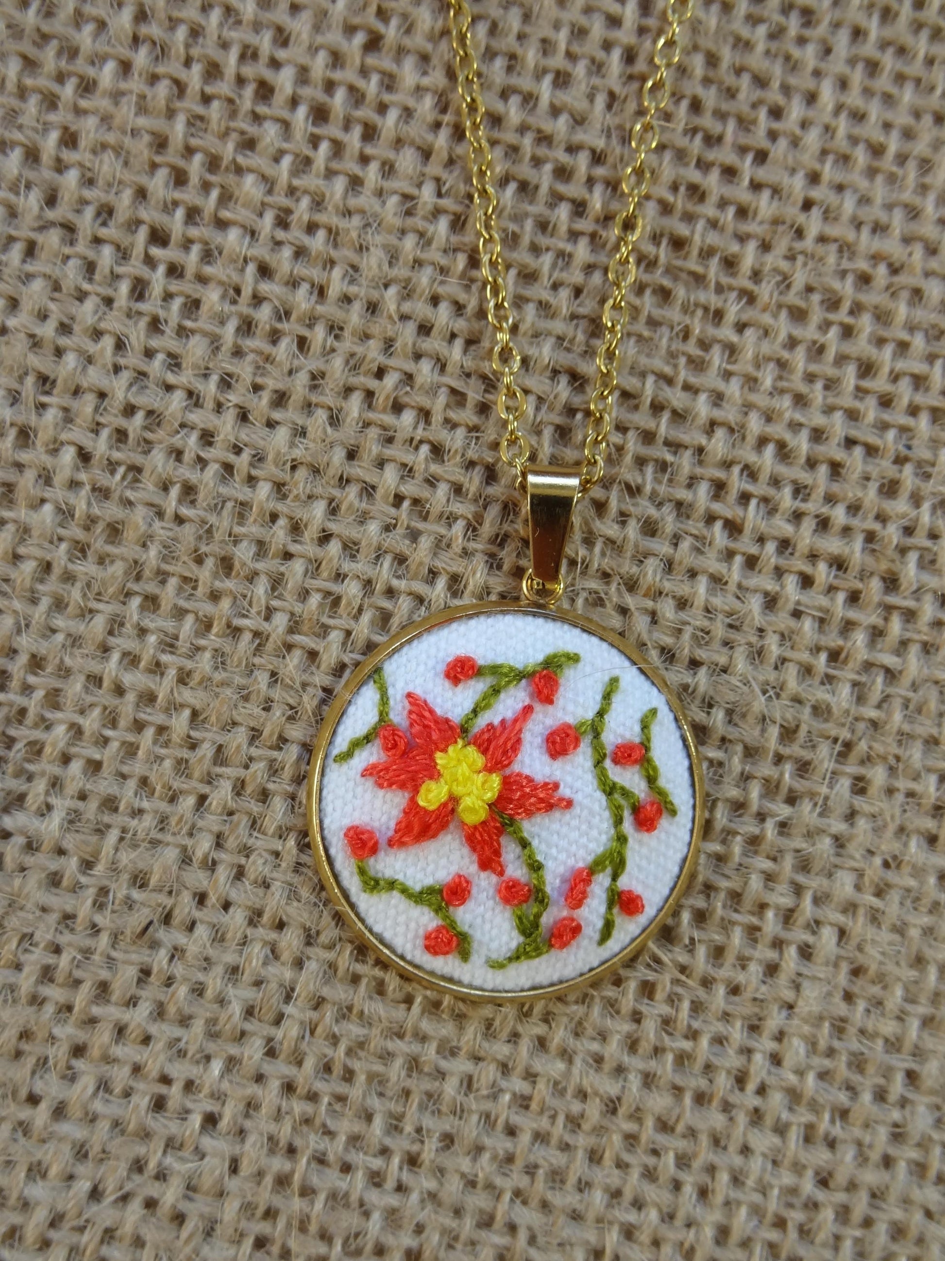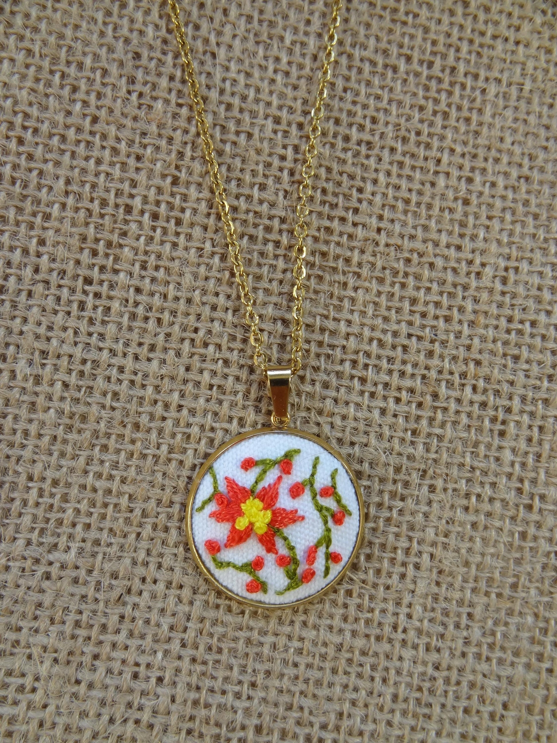 Parfait Chaos vous propose ce délicat collier avec un pendentif brodé à la main.