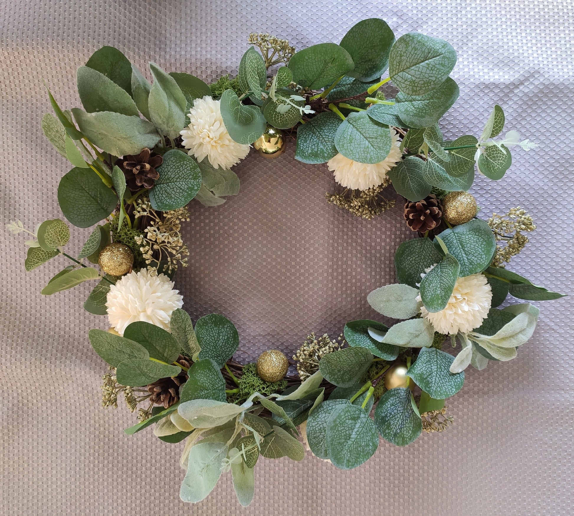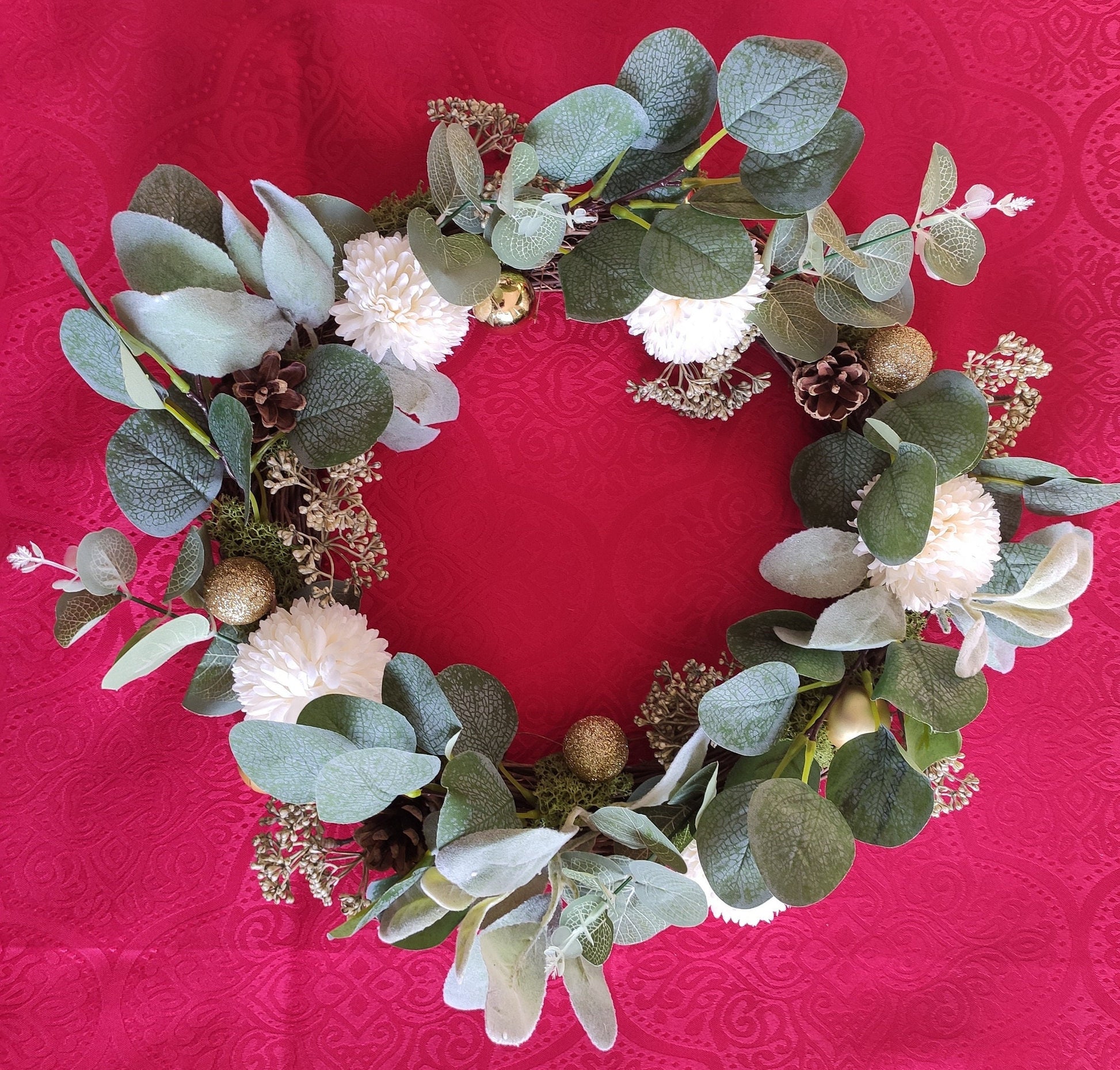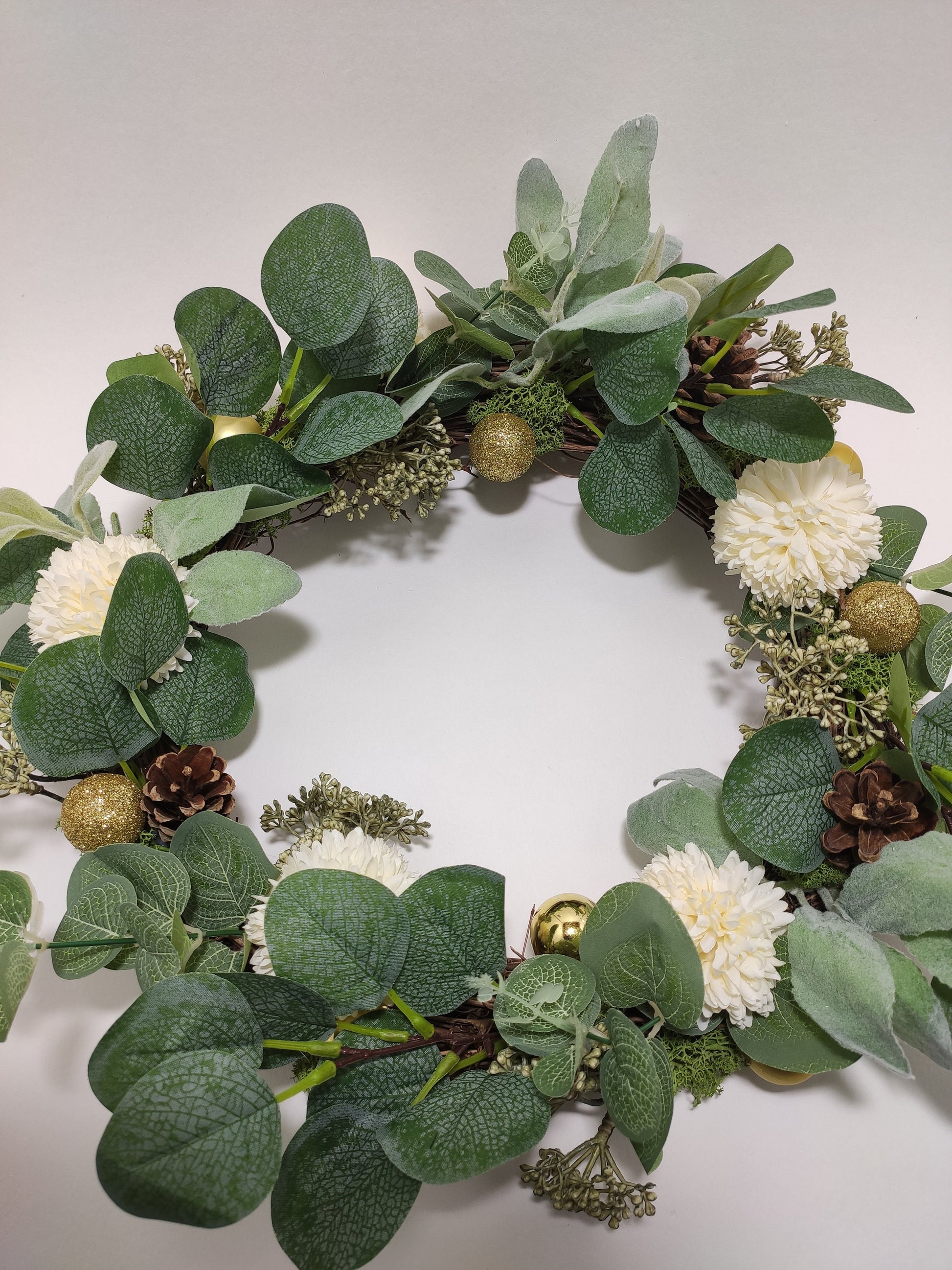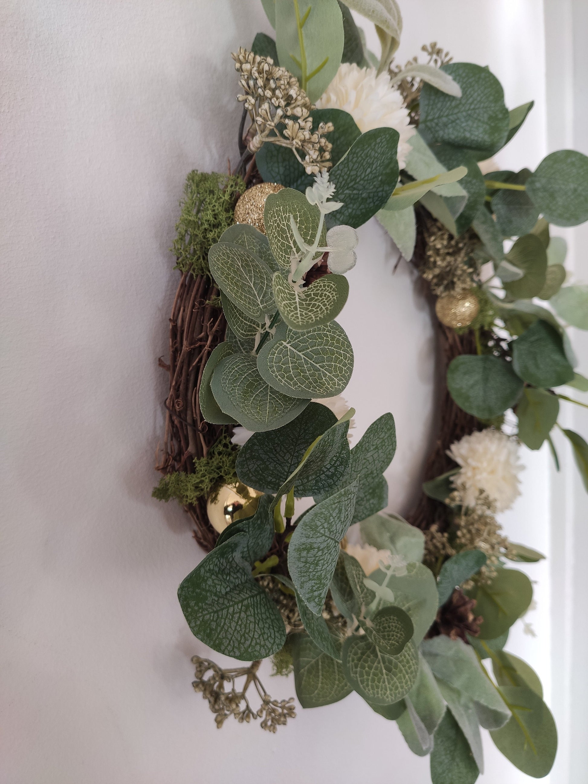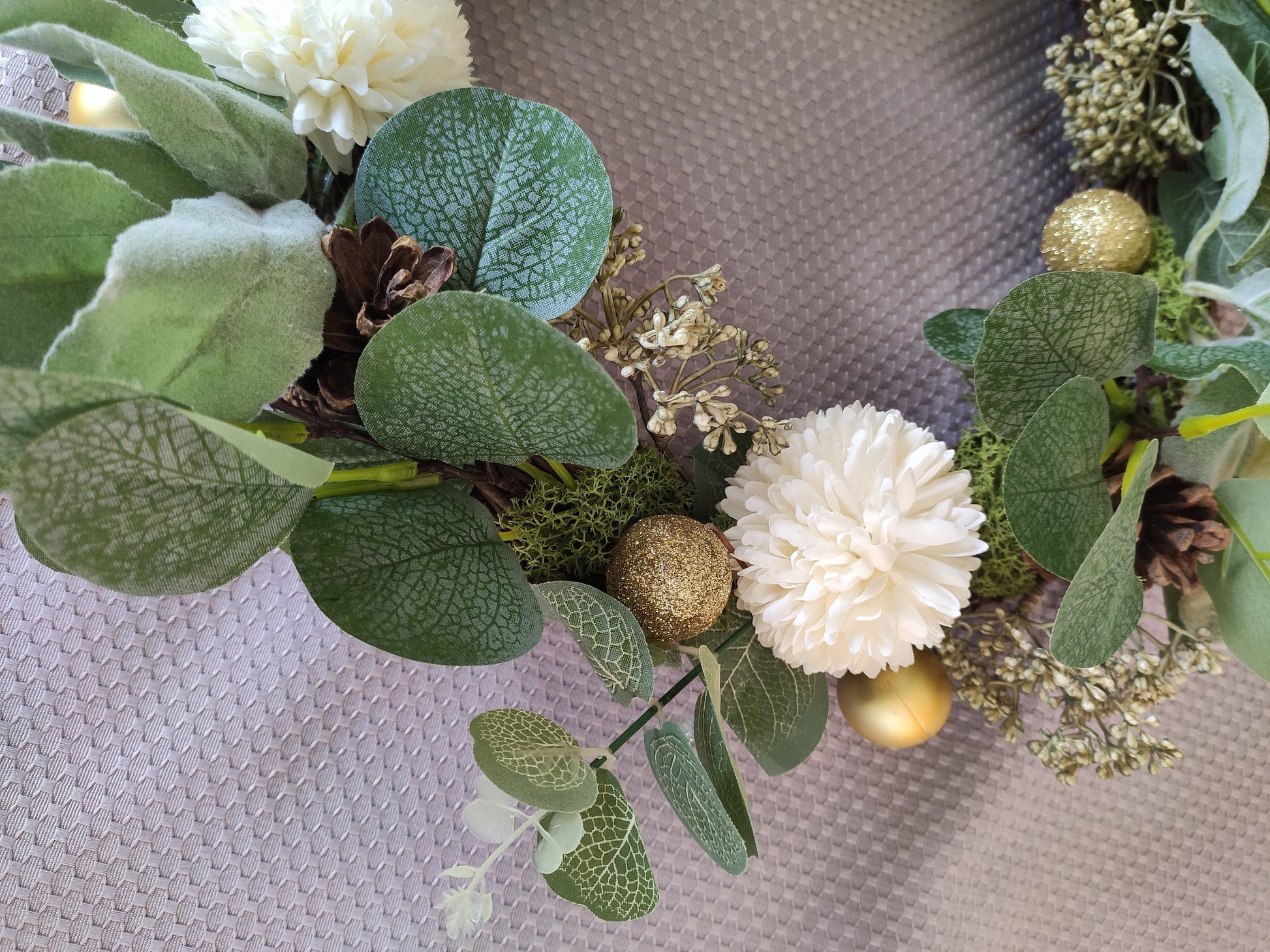 Avec cette couronne faites entrer l'esprit de Noël dans votre foyer. Avec ses couleurs classiques et intemporelles elle traversera les années avec charme. Elle sera d'ailleurs parfaite pour toutes saisons et toutes occasions (Mariage, baptême,...)